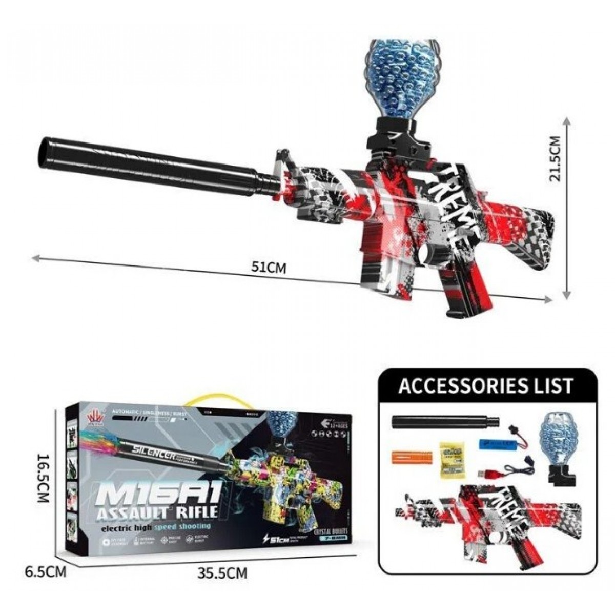 Игрушка имеет два режима работы: автоматический и механический. В механическом режиме нужно вручную "заводить" механизм перед каждым фото, а в автоматическом оружии работает от аккумулятора и стреляет очередями. Автомат стреляет орбизами, потому игры с ним будут не только лишь реалистичными, да и неопасными.