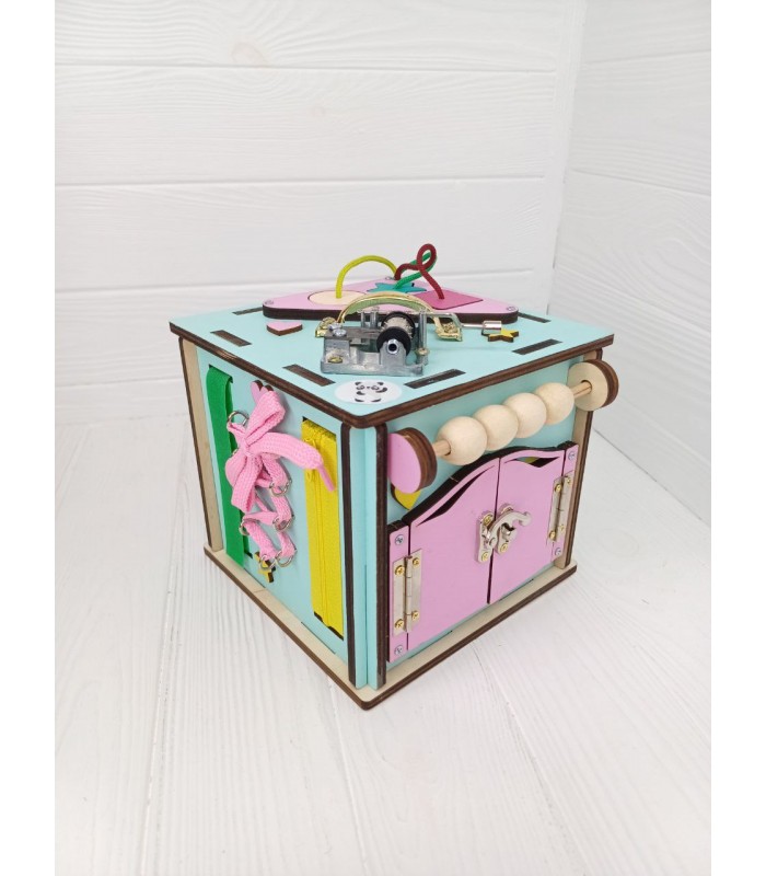 Куб имеет компактные размеры, что делает его удобным для хранения в доме и позволяет брать с собой в дорогу, чтобы ребенок не скучал в пути. Несмотря на свои небольшие размеры, куб обладает множеством игровых элементов: