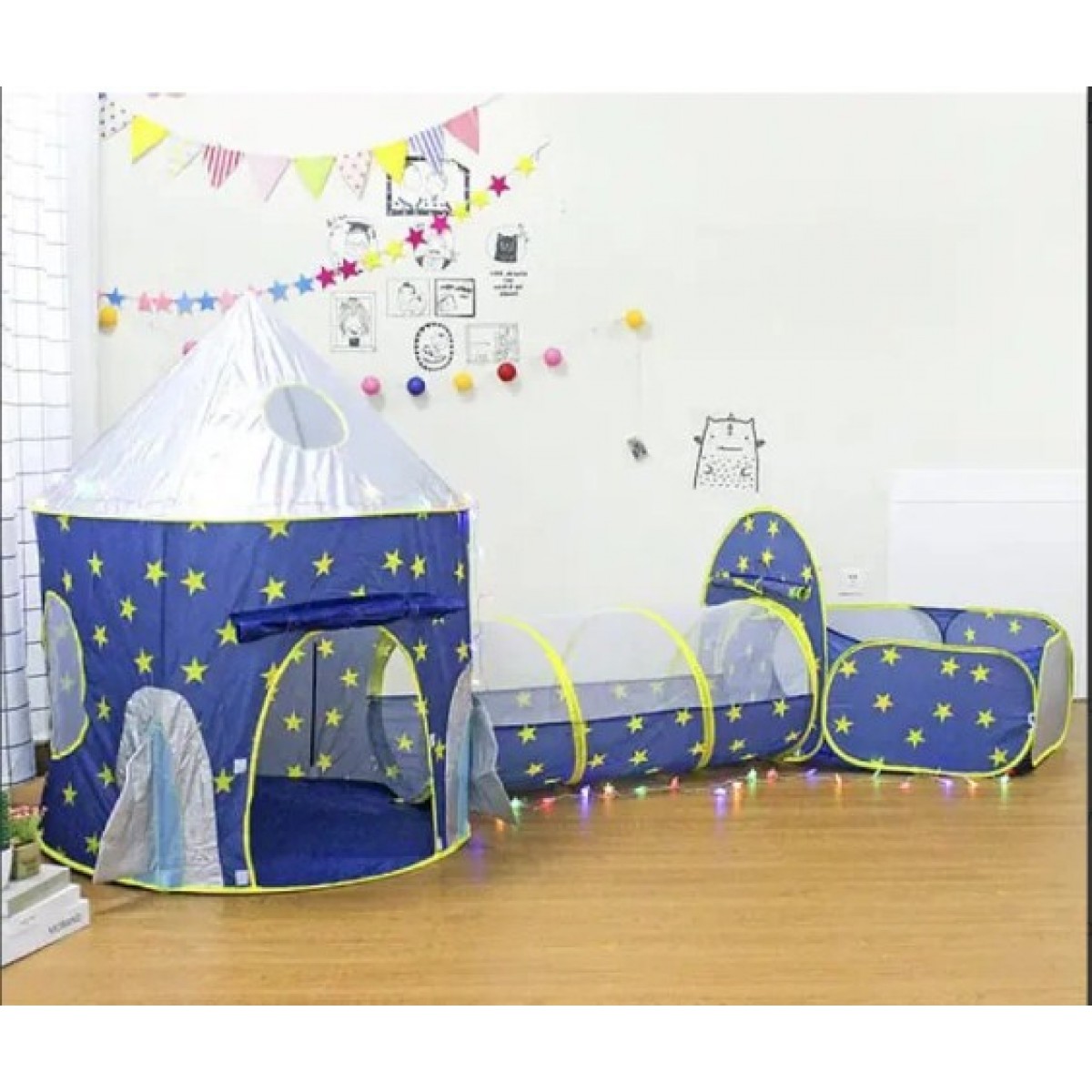 • Детская палатка 3 в 1 (палатка, туннель и сухой бассейн для мячей) Ракета (синяя 600-27), пакунок малюка