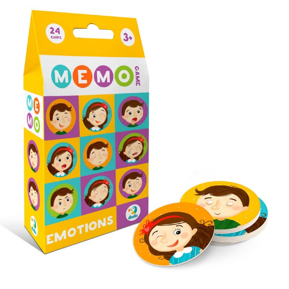 Игра "MEMO: Эмоции" приглашает малышей в мир ярких эмоций! В наборе 24 фишки (12 пар) диаметром 5 см с яркими иллюстрациями, которые заинтересуют детей от 3 лет.