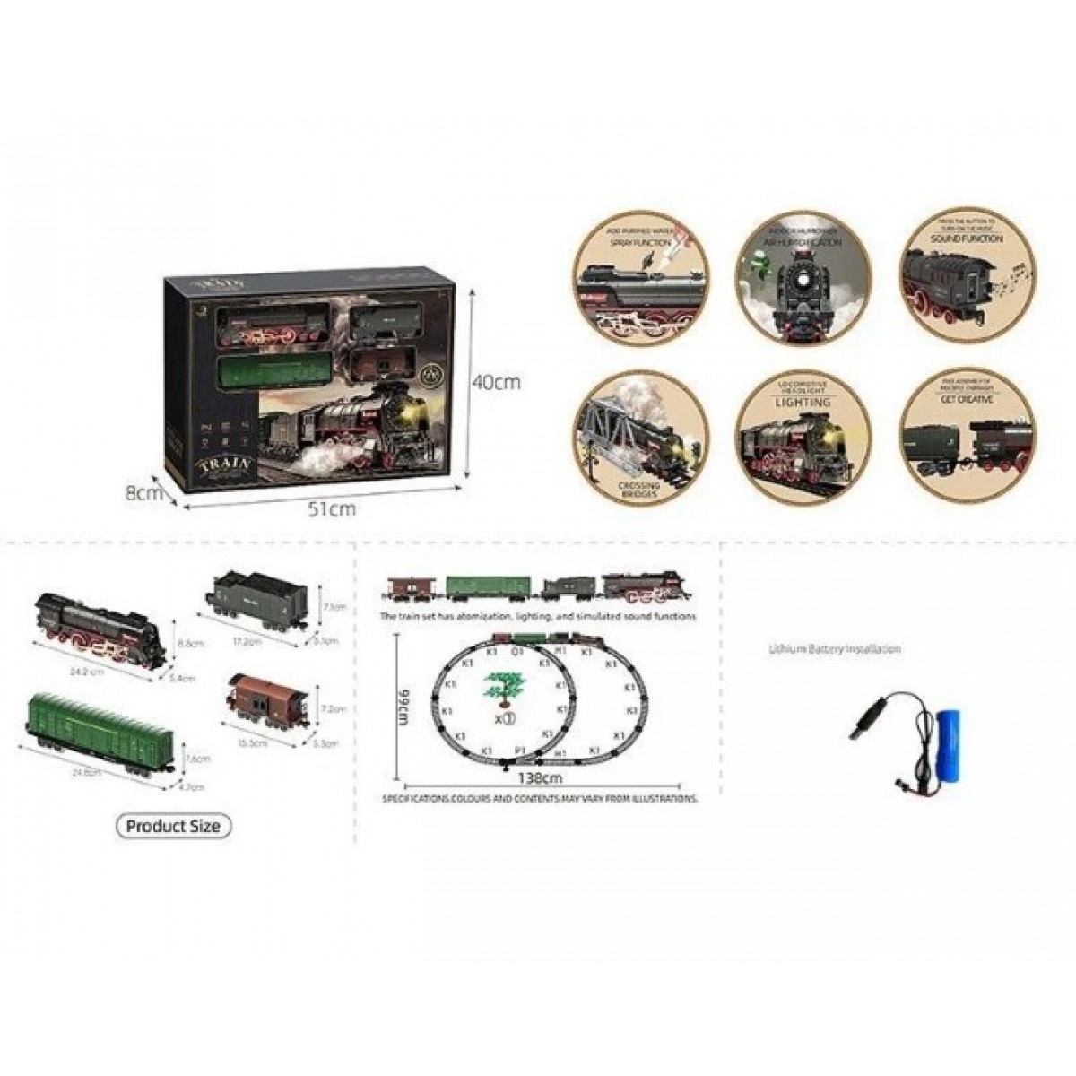 Погрузитесь в волшебный мир путешествий прошлого вместе с роскошной ретро-железной дорогой с эффектами настоящего поезда!