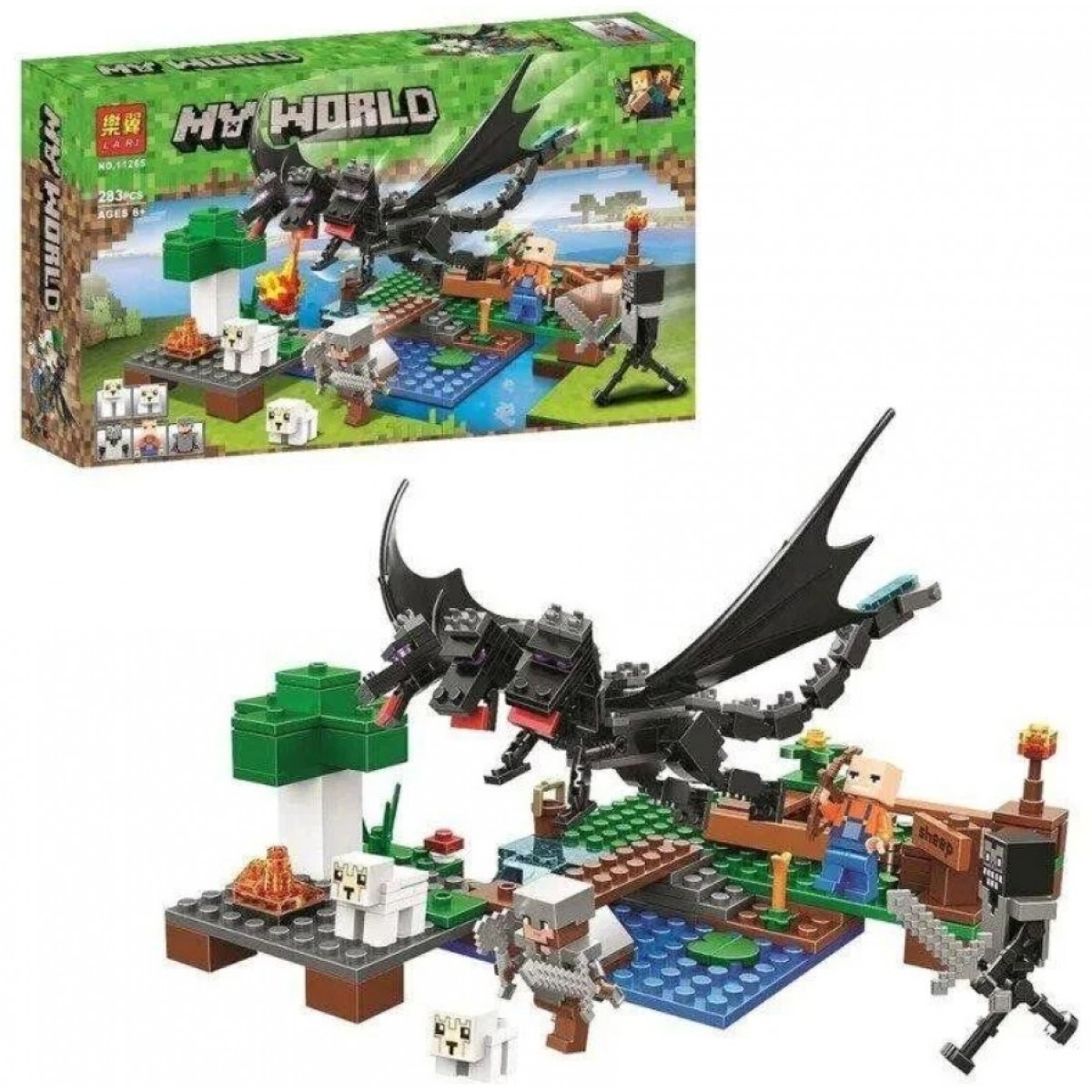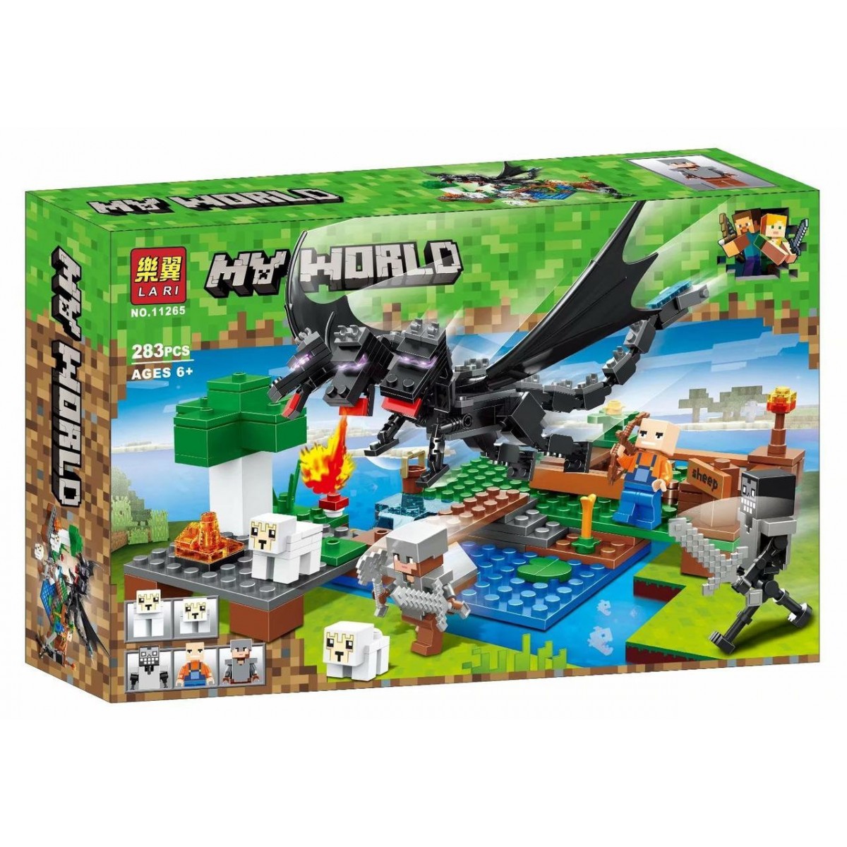 Главный объект сборки в реплике LEGO Minecraft – фигура огнедышащего зверя. Все его туловище покрывает черная чешуя. Из пасти с красным языком вырывается огненное пламя. Испепеляет жителей взгляд глаз, озаряемых нежным свечением фиолетового цвета. Венчает корпус сборной модели три головы. Длинный хвост выступает естественным завершением туловища. Опорой крылатого змея являются передние и задние конечности (игровой персонаж имеет шарнирное крепление суставов). В стороны от корпуса отходят перепончатые крылья.
