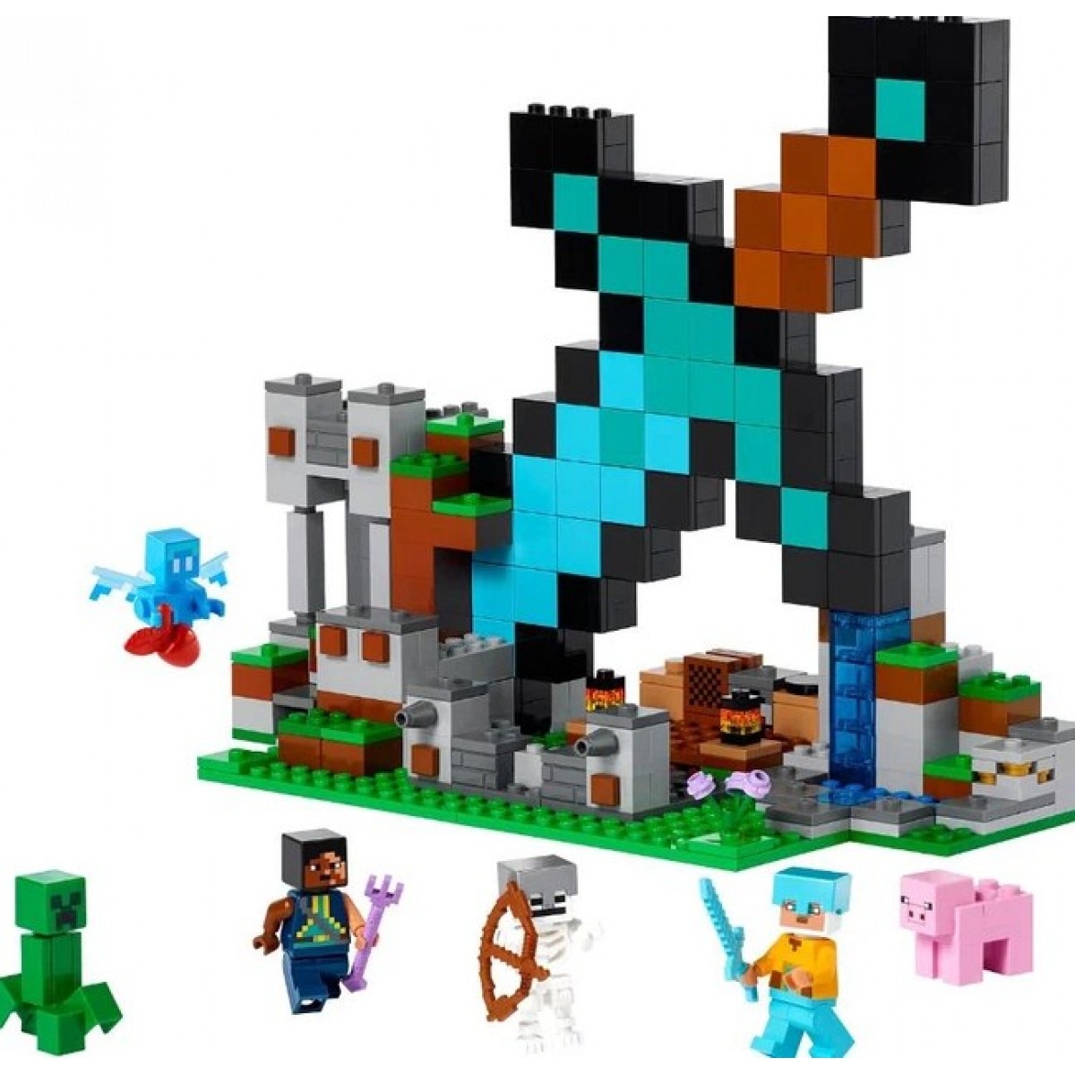 Постройте очень классную основу в форме большого бриллиантового меча. Внутри можно отдыхать и включать диск на музыкальном проигрывателе. Снаружи расположите солдата-часового и воина-хранителя, чтобы защищаться от нападений крикрипа и скелета. Когда взрыв крепости разрушит сторожевую башню, пора открыть огонь из двух стрелковых установок в передней части базы. Будьте осторожны и не попадите в дружескую свинью и эллей!