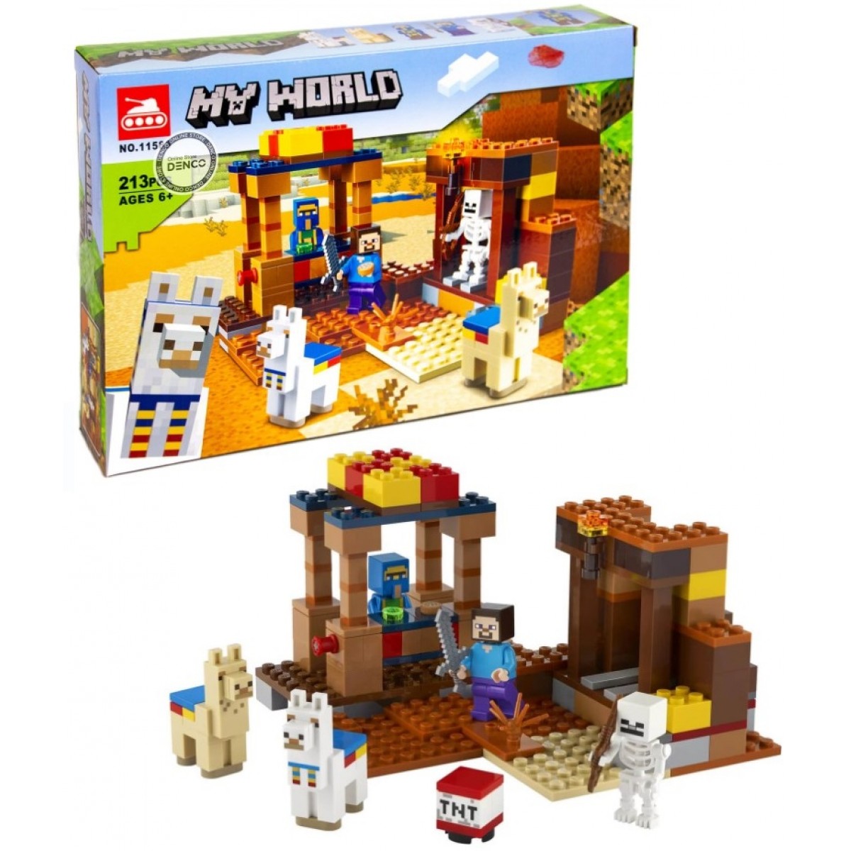 Стив заготовил товары для обмена, чтобы отправиться на торговый пост к торговцу. Хорошо, что Стив захватил с собой меч, он ему явно пригодится. На торговый пост напал скелет. Ламы бегают вне загонов, а торговец спрятался в своей лавке. Нужно срочно защитить торговый пост и отразить нападение врагов.