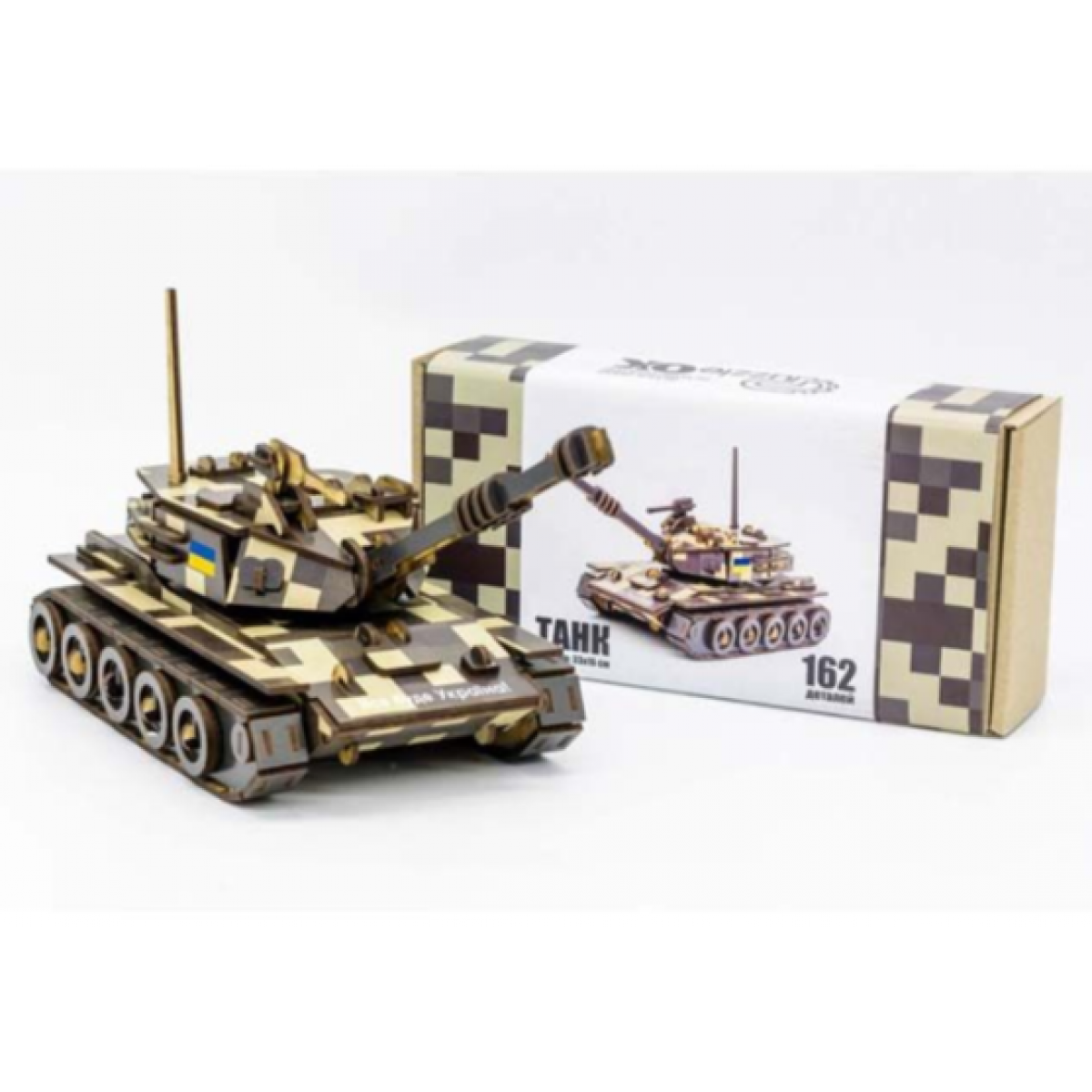 • Деревянный конструктор Военный Танк 162 детали 3D конструктор 162-0074 PuzzleOK, пакунок малюка, для детей от 6 лет