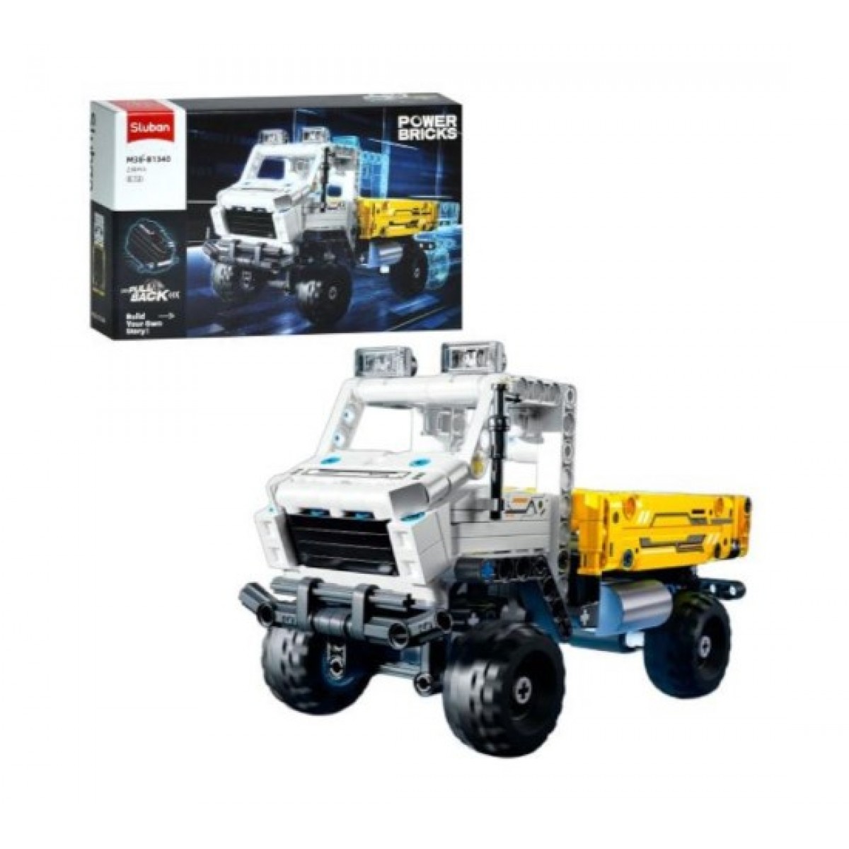 Конструктор SLUBAN M38-B1340 из серии Power Bricks предназначен для сборки модели грузовика с элементами реалистичного дизайна. В наборе 230 пластиковых деталей из которых создается машина с мощной кабиной, открытым кузовом и подвижными колесами. Модель имеет детализированную конструкцию с передним бампером, фарами и декоративными вставками, имитирующими технические элементы. Грузовик выглядит устойчиво и может использоваться для игры после сборки. Подробности совместимы с другими наборами бренда SLUBAN и легко соединяются между собой. Конструктор способствует развитию логического мышления, воображения, технических навыков и мелкой моторики.