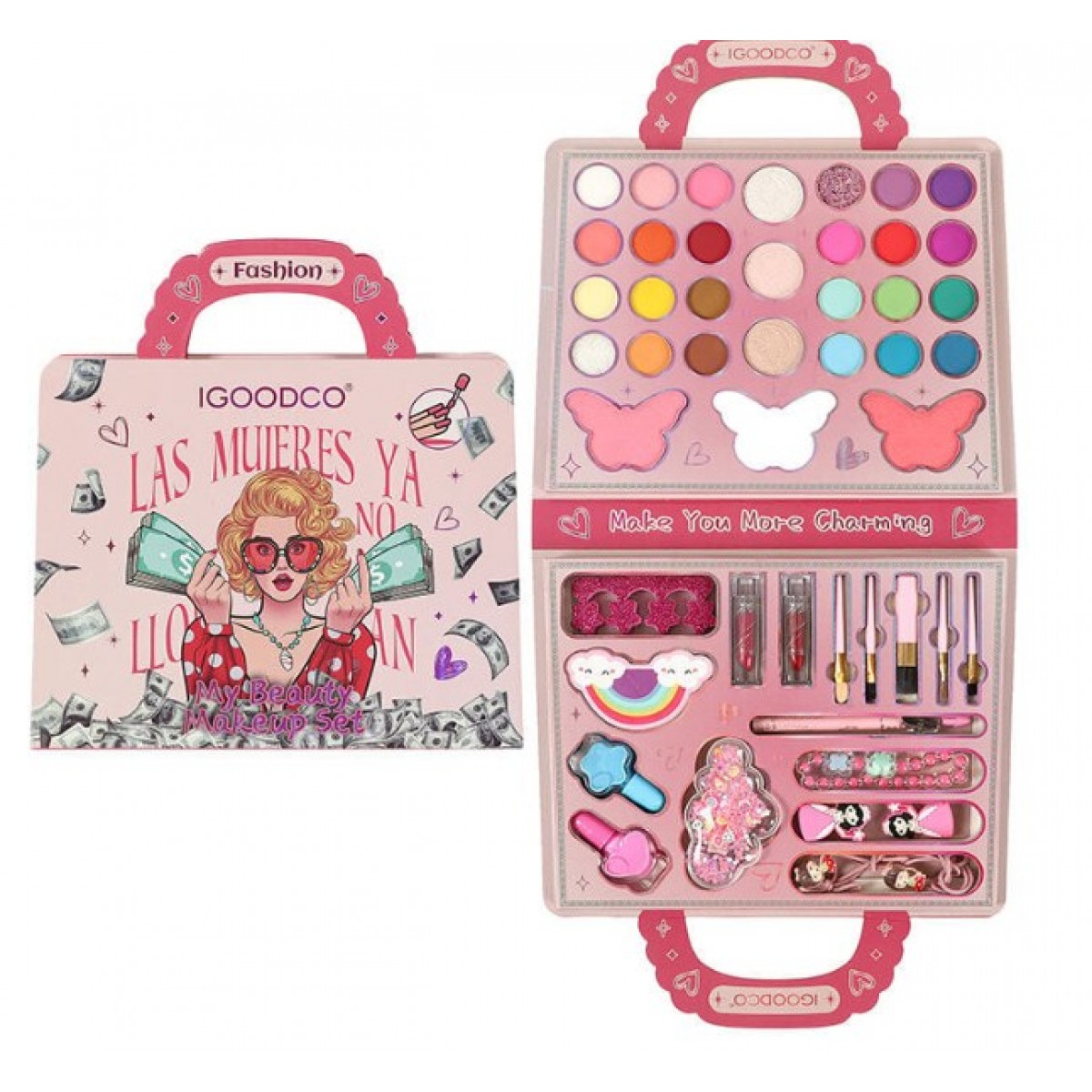 Компактный чемоданчик в приятных тонах скрывает целый мир красоты. Идеально подходит для творческих игр, подражания маме и развитию воображения.