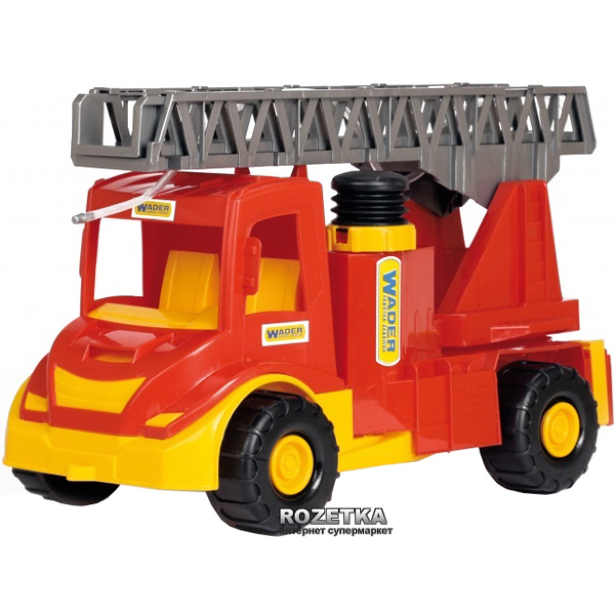 Пожарная машина Wader — прочная, 40-сантиметровая машина. В передней части автомобиля расположена петля для крепления шнурка. Игрушка отличается прочной конструкцией и простым управлением.
