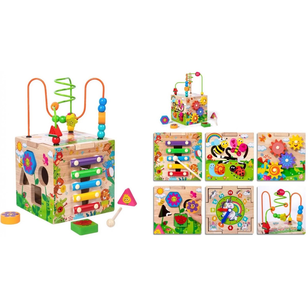 Этот большой деревянный развивающий куб превращает игру в увлекательное путешествие в мир ярких красок и интересных задач! Каждая грань игрушки дарит новую активность: от сортировки фигурок и игры на ксилофоне до игр с пальчиковыми лабиринтами и часами. Малыш с интересом будет изучать цвета, формы и различные подвижные элементы, а игра будет естественно способствовать развитию важных навыков.