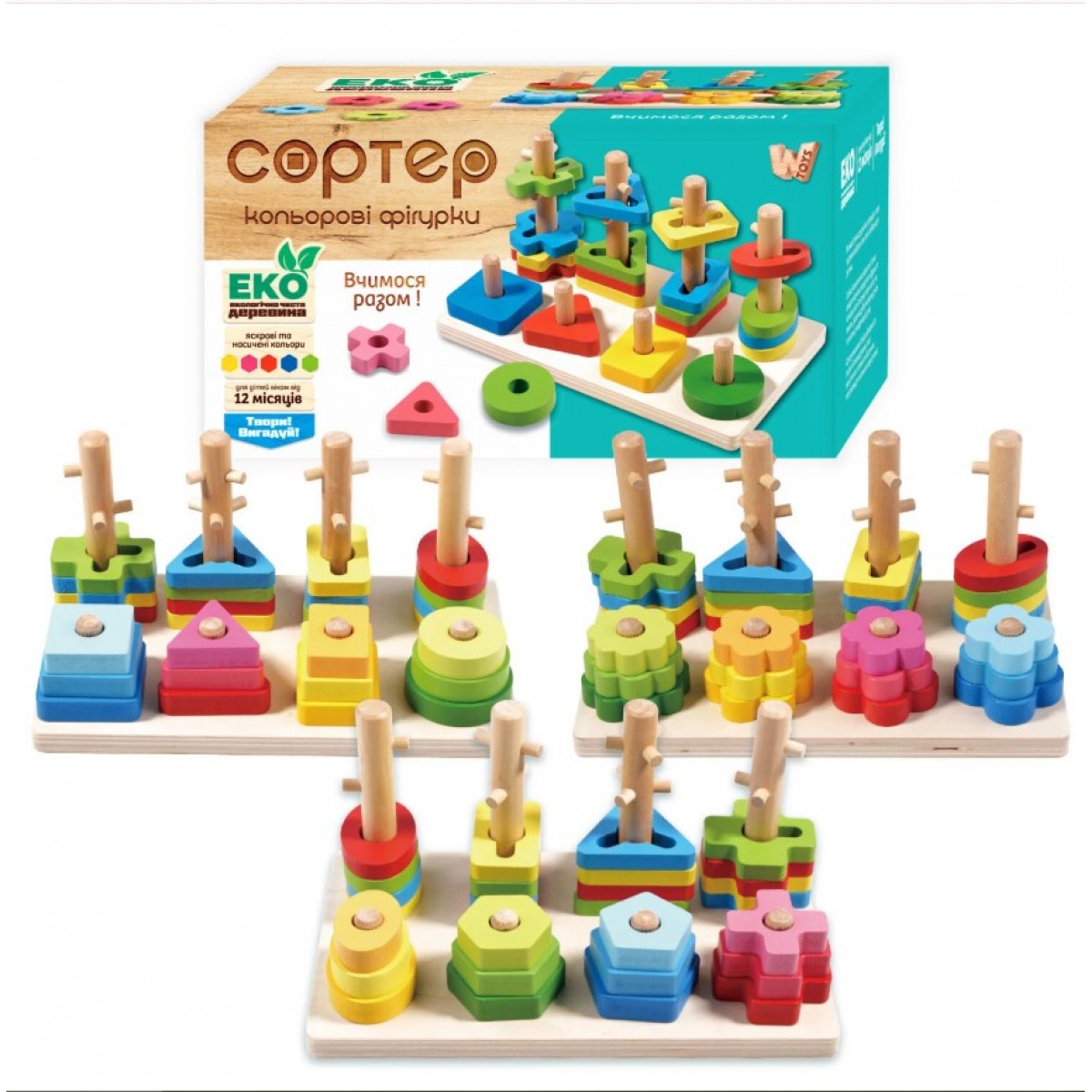 Сортер выполнен из отшлифованной и покрытой лаком древесины, являющейся экологичным и полностью безопасным материалом для маленьких пользователей.