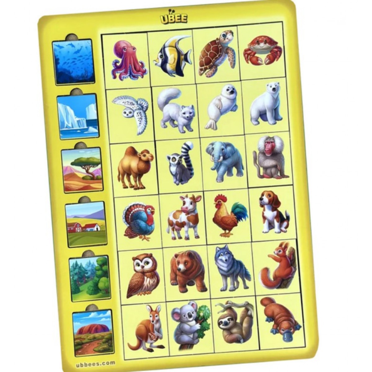 Эта детская развивающая игра сортер - это интересный и эффективный способ познакомить малыша с животным миром. Возраст: 1,5 + Размер: 32 х 23 см. В комплекте: - деревянный планшет-рамка; - 6 различных съемных плашек картинок среды обитания животных; С помощью ярких картинок можно показать и рассказать ребенку, кто живет: - в лесу - на ферме - в море - в Африке - в Австралии - в Арктике Играя, ребенок запомнит, как выглядят животные, развивая мелкую моторику рук, ассоциативное мышление, словарный запас, память, логику и кругокружение. малышам не было механического запоминания и играть будет еще интереснее. А еще с плашками можно поиграть в игру "мемори" и "4-й лишний"