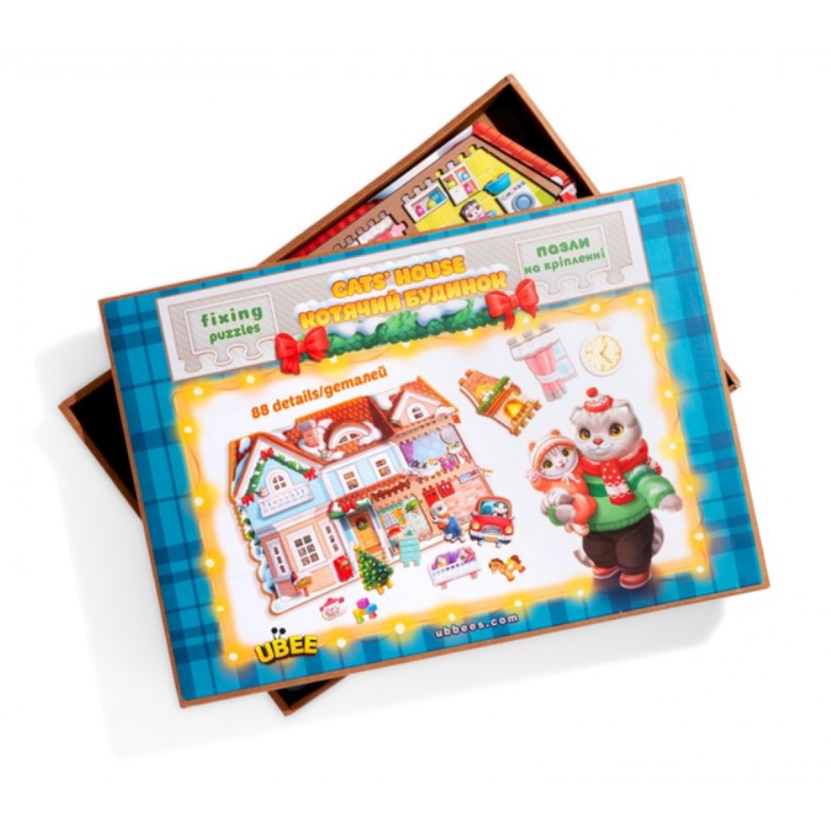 Деревянный пазл-вкладыш 'Кошкин дом' представляет собой уникальное сочетание развивающей игрушки и красочного изображения, созданного на 88 деталях. Этот пазл не просто собирается, он также многослойной головоломкой, где каждый уровень открывает новые детали и сюжетные элементы. С помощью 'Кошачьего дома' дети могут погрузиться в увлекательный мир приключений маленького котенка, исследуя каждый уголок его дома. От кухни до спальни, от гаража до чердака – каждый уровень этого пазла открывает новые яркие детали и веселые сюжеты.
