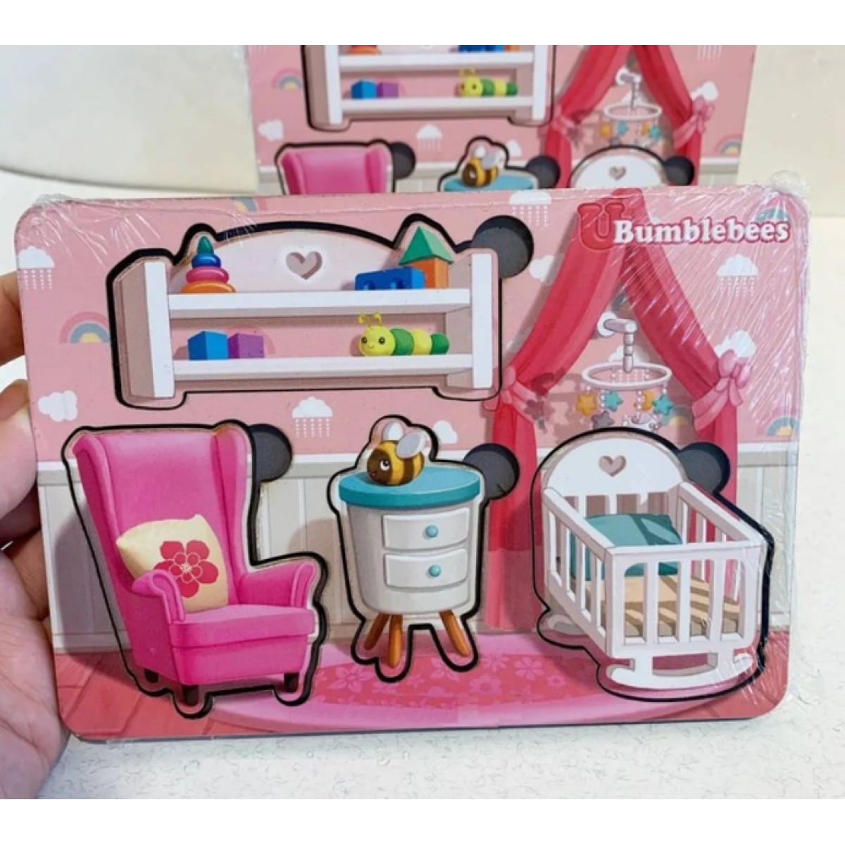Мини-вкладыши с подсказкой-силуэтом каждого вида мебели на дне. Рамки-вкладыши развивают мелкую моторику пальчиков (которая напрямую связана с развитием языка), координацию движений, сенсорику, тактильные ощущения, помогают научить начальному счету (от 1 до 4), умению сравнивать размеры (маленький-большой, более или менее).