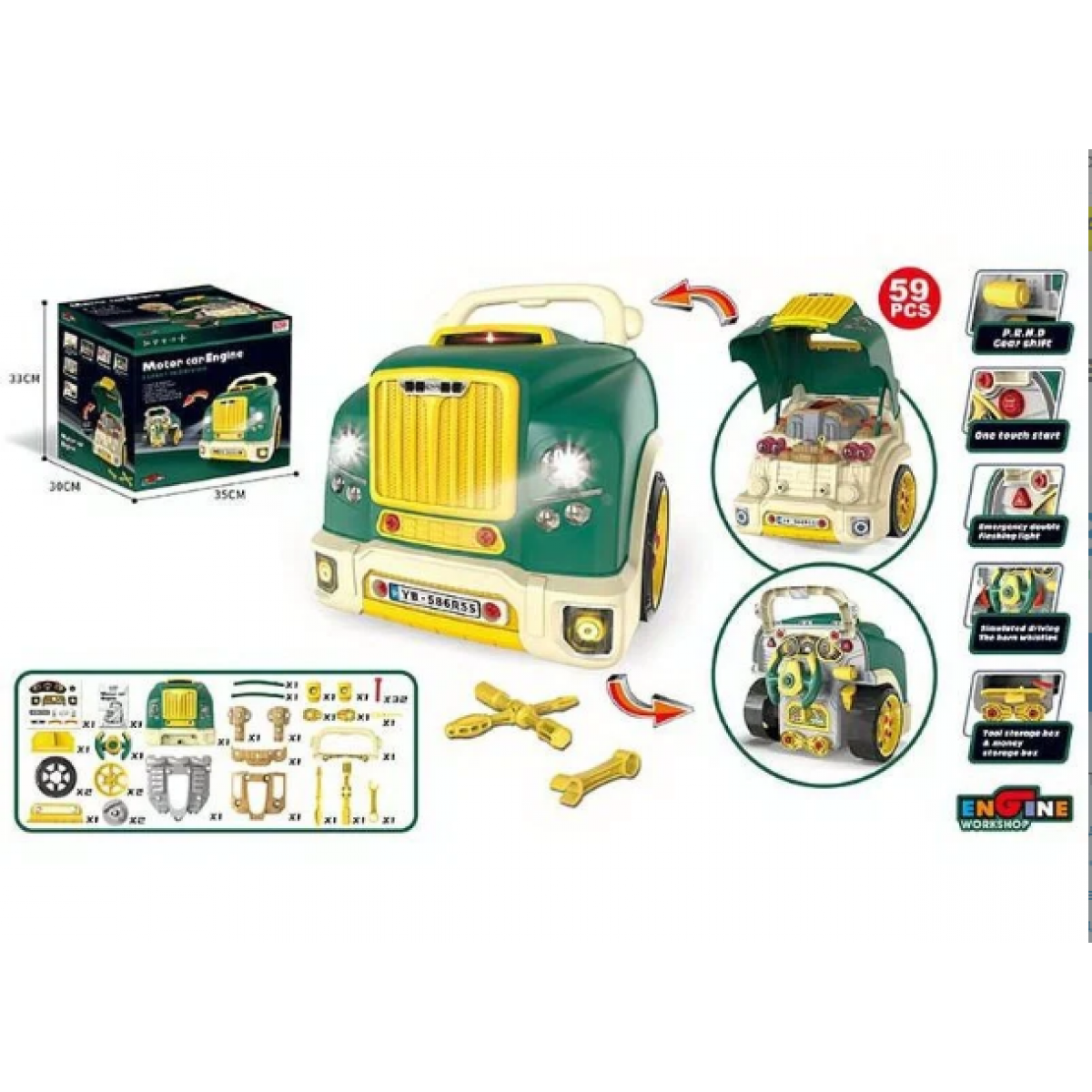 Функциональная игрушка-тренажер для начинающего автослесаря, интересующегося машинками. Выполнена в виде машины с открывающимся капотом. Мальчику нужно будет самостоятельно собрать и прикрепить каждую деталь сложного механизма машины, для этого в комплекте шурупы и соответствующие инструменты. Процесс сборки приведет мальчика в полный восторг!