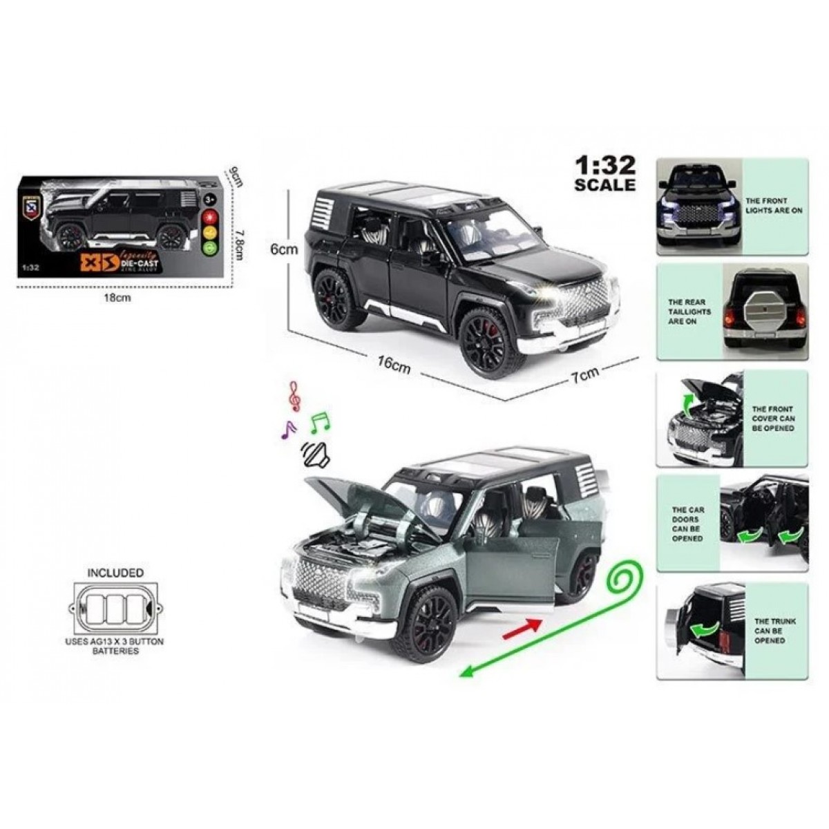 - светозвуковые эффекты работают при нажатии на капот машинки;