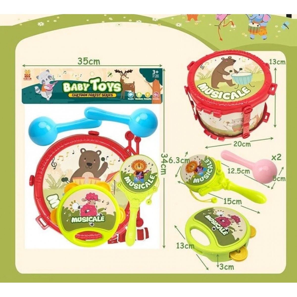 Этот музыкальный набор превратит игру ребенка в настоящий концерт лесных зверьков! В комплекте собраны инструменты, с которыми малыш сможет создавать собственные ритмы, импровизировать и знакомиться с миром музыки. Веселые иллюстрации, удобные ручки и легкие инструменты делают игру комфортной даже для самых маленьких музыкантов. Такой набор отлично тренирует ощущение ритма, слуховое восприятие, координацию и воображение.