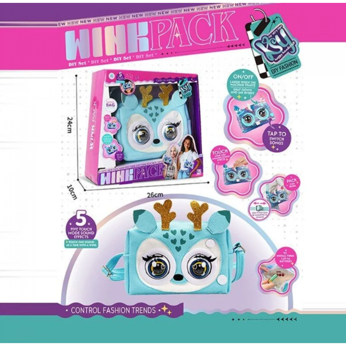 Популярная игрушка в виде интерактивной сумочки с большими глазками готова стать лучшей подружкой для малышей! Ведь маленький зверек умеет моргать, воспроизводить разные звуки и даже проигрывать музыку! Сумочка имеет вместительное отделение для хранения разных безделушек. Ремешок игрушки можно отрегулировать, что поможет сделать игру максимально комфортной.