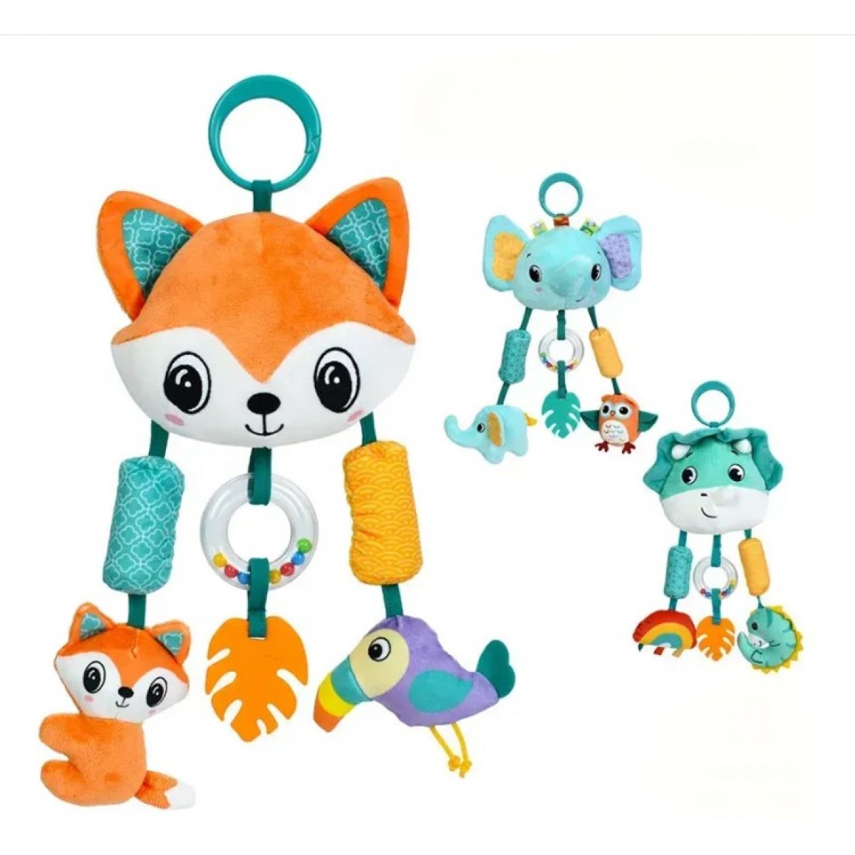 Игрушка выполнена в виде забавных животных – динозаврика, лисички или слоника, которые сразу привлекают внимание своим милым дизайном.