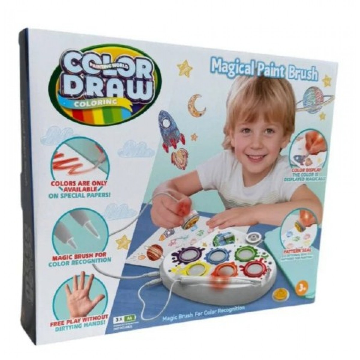 Благодаря специальным краскам Color Wonder дети могут создавать забавные красочные картины, не опасаясь, что все вокруг также будет разрисованно. Окуните волшебную кисть Magic Light Brush в краски и наблюдайте, как они волшебным образом засветятся: оранжевым, зеленым, желтым, красным, синим и фиолетовым! Затем используйте кисть, чтобы нарисовать красочные изображения на страницах Color Wonder. Эти изображения будут цветными. Вот это волшебство!!!