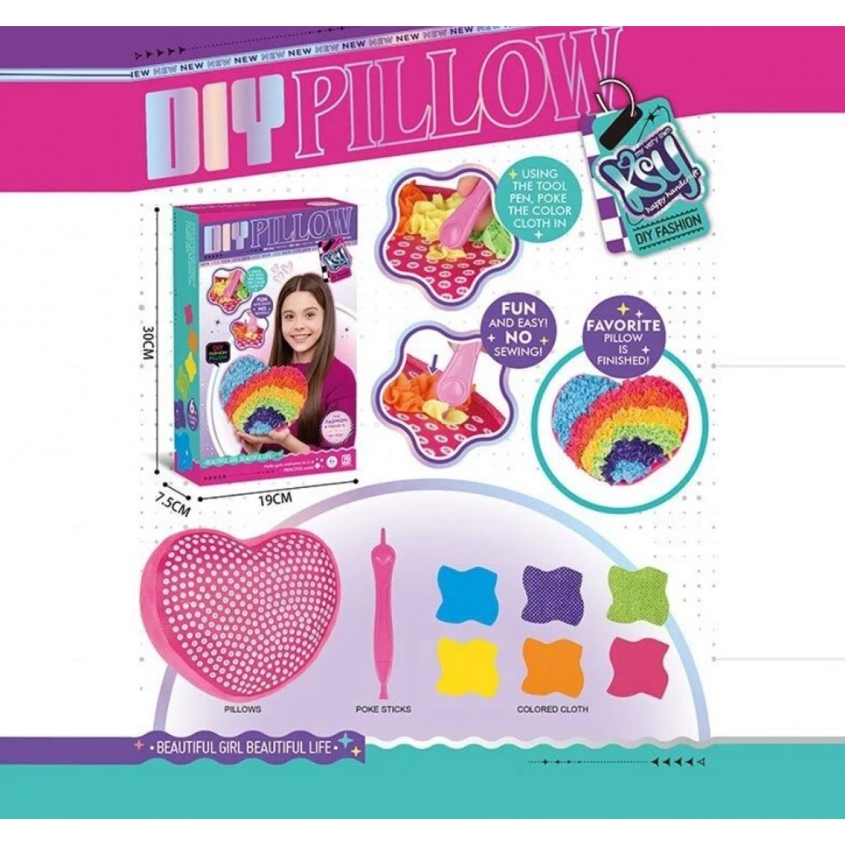 Этот творческий набор "Укрась подушку" превращает процесс создания подушки в увлекательную и легкую игру! Ребенок может собственноручно сделать яркую декоративную подушечку, используя разноцветные лоскутки, специальный инструмент и милые декоративные детали. Процесс не нуждается в игле или нитях — достаточно просто вставлять ткань в специальные отверстия, создавая пушистый узор. Такая творческая работа развивает мелкую моторику, воображение и аккуратность, а готовая подушка станет излюбленным аксессуаром комнаты или милым подарком.