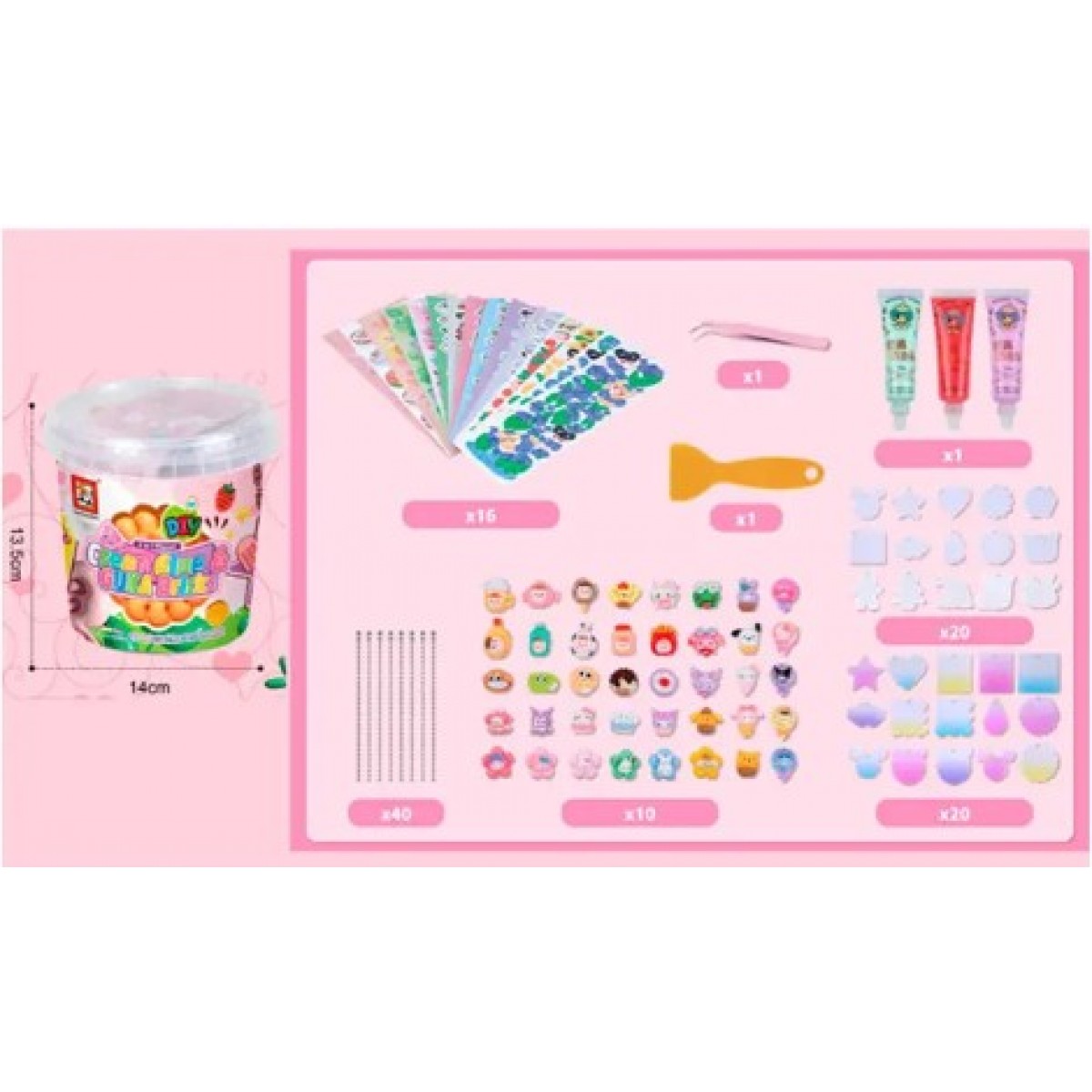Набор для творчества RDF-171A (36шт) формы для брелков, наклейки, фигурки, клей, инструменты, в ведре, 14-13-14см