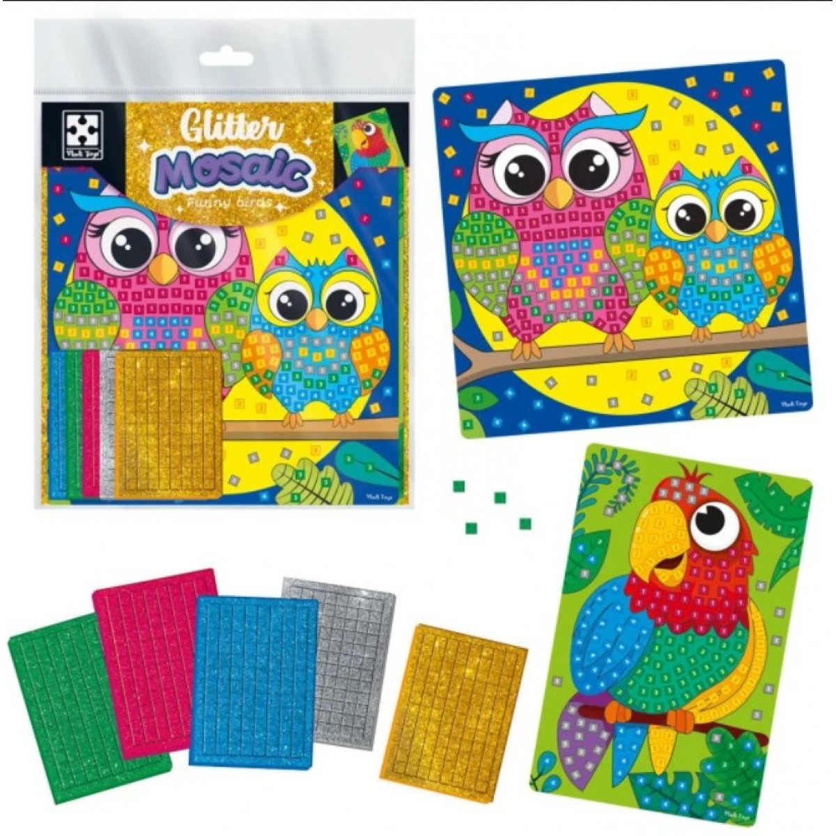 Набор для творчества с блестящей мозаикой «Сова и попугай» получит однозначное предпочтение от ребенка! Яркая и блестящая картина с характерными персонажами увлечет малышей в процессе творчества.