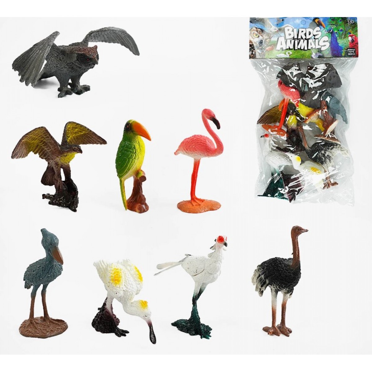 Помогите вашему ребенку начать его увлекательное путешествие в мир изучения биологии и живой природы вместе с этим набором фигурок! Игрушки в наборе выполнены из прочного пластика и имеют высокую детализацию и реализм как в форме, так и в цветах. Набор имеет восемь фигурок разных птиц, происходящих из разных уголков нашей планеты, так малыш может познакомиться и с экзотическими страусом и фламинго, узнать в наборе знакомую каждому сову.