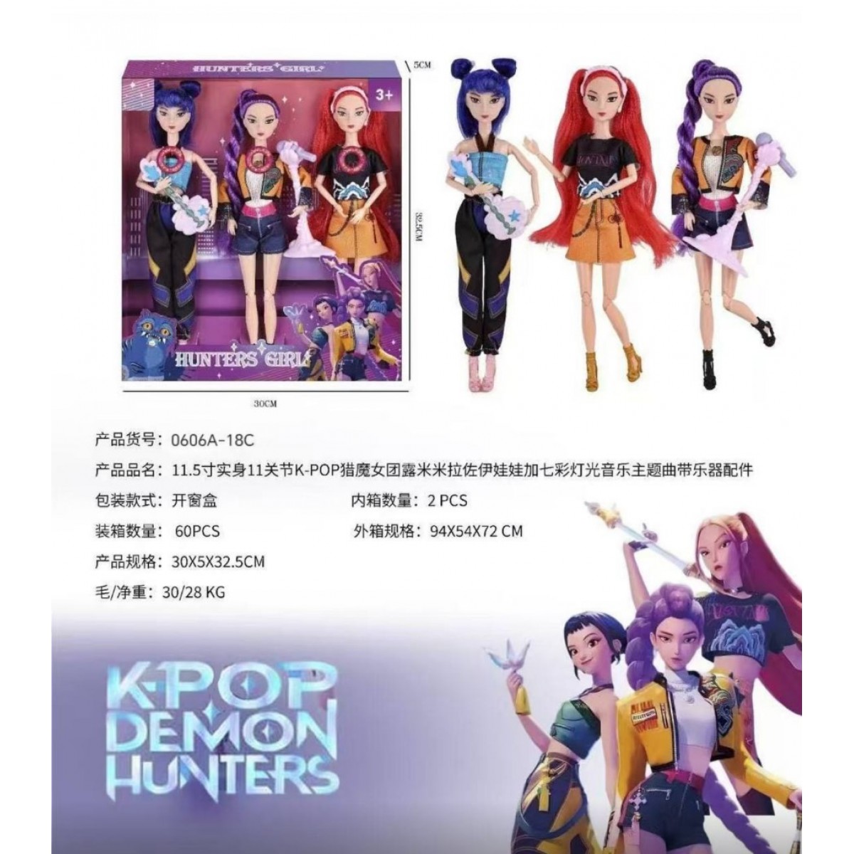 Откройте мир музыки и стиля с набором K-Pop Demon Hunters. В комплекте три ярких персонажа — Руми, Милу и Зои. Каждая кукла поет и светится, делая игру еще более увлекательной и интерактивной.