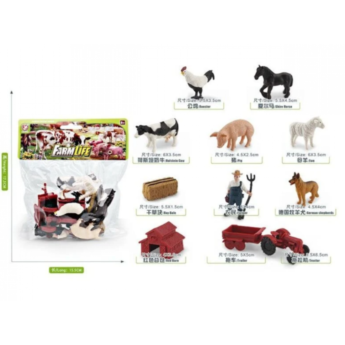 Набор животных YJ 833 D "Домашние животные", 6 фигурок, фермер, сено, трактор, хлев, средняя длина животных 5.5 см, пакунок малюка