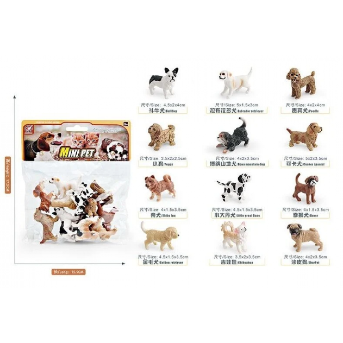 • Набор животных YJ 847 D "Песики", 12 фигурок, средняя длина 4 см, пакунок малюка