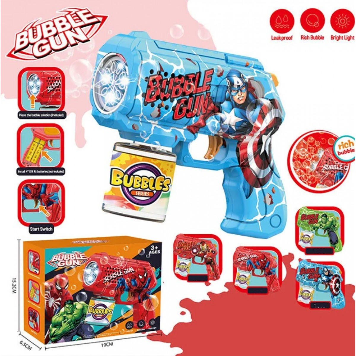 Пистолет с мыльными пузырями 106 D, подсветка, бутылочка с мыльной жидкостью, пакунок малюка