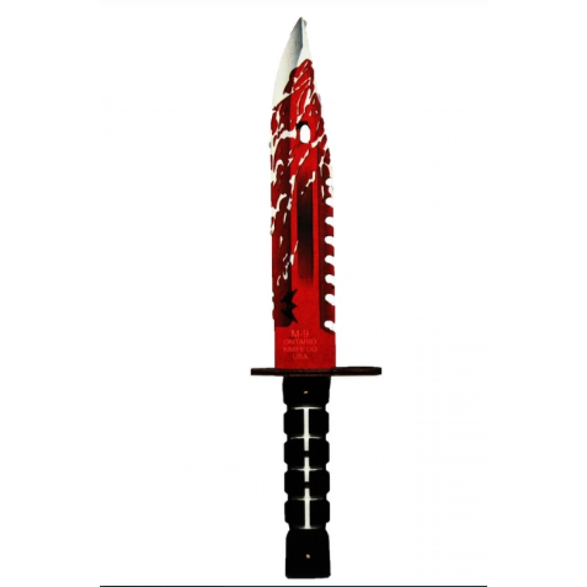 Нож сувенирный "M9 Bayonet" - штык нож. Материал: фанера. Длина ножа – 27 см, ширина ручки – 2,5 см. Отличный подарок-сувенир. Нож деревянный, качественный и крепкий. Не заточен, острые части закруглены и зашлифованы, полностью безопасны. Для детей от 6 лет.