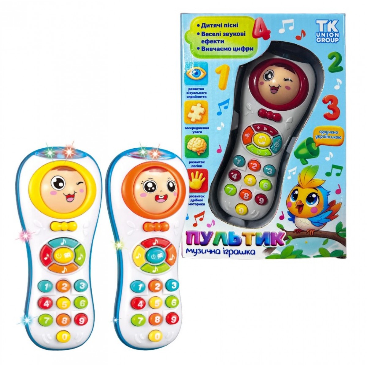 Малыш так любит нажимать кнопки на пульте – теперь у него будет собственный! Яркая музыкальная игрушка создана специально для маленьких исследователей, познающих мир из-за игры. Нажимая на разноцветные кнопки, ребенок слушает мелодии, веселые звуки и знакомится с цифрами. Световые эффекты привлекают внимание и делают игру еще более интересной. Такой пультик помогает развивать любознательность, слуховое восприятие и мелкую моторику.