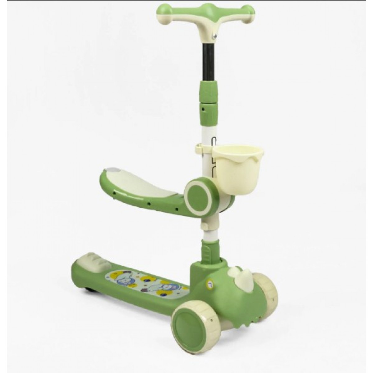 Самокат трехколесный с сидением FM-9040/04, колеса PU 125х40мм со светом, музыка и подсветка платформы, руль складной, корзина, пкунок малюка