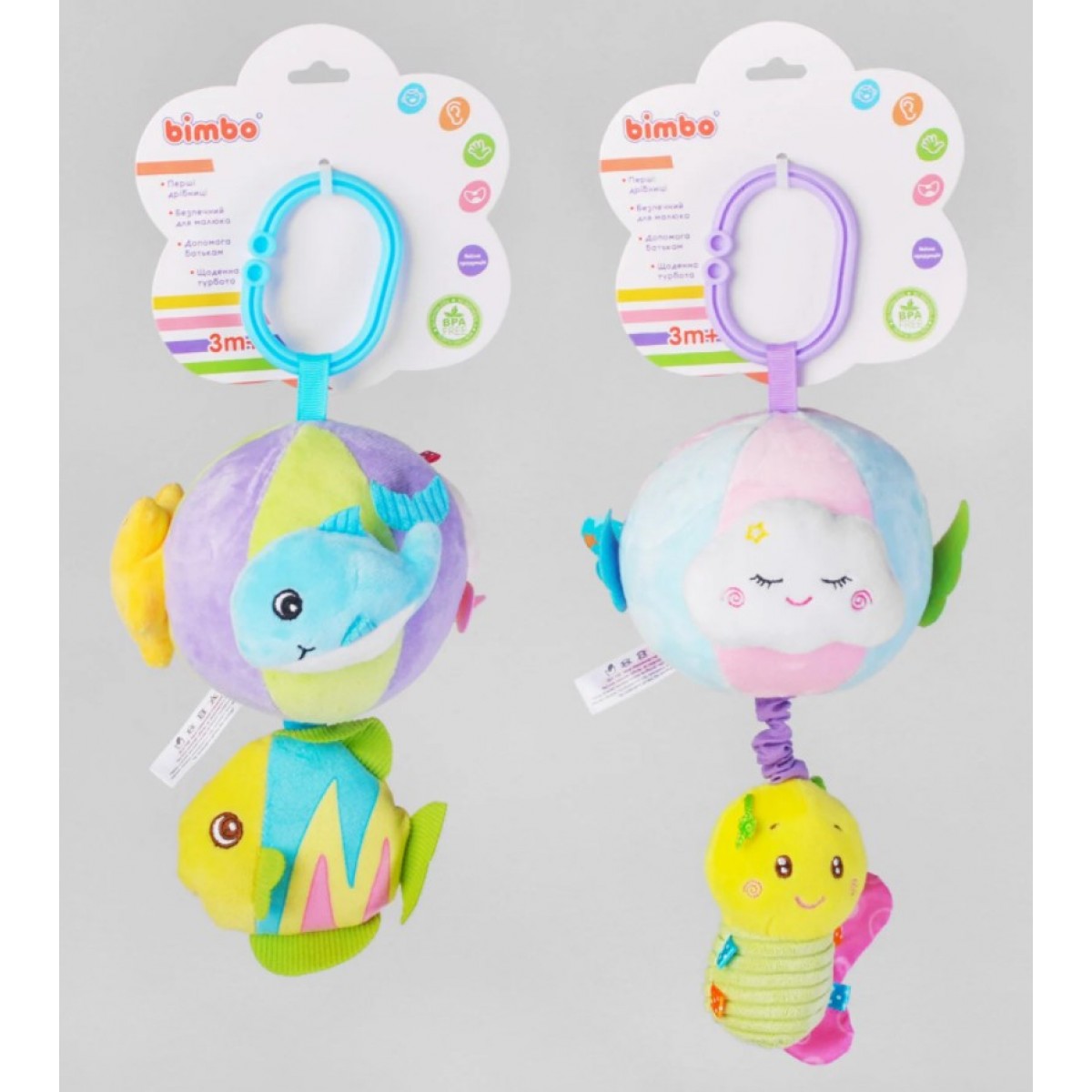 Плюшевая погремушка ВМ - 55004 станет одной из самых любимых игрушек ребенка! Миловидный дизайн и интересный функционал точно покорит малыша и поможет весело провести время! Игрушка выполнена в виде полосатого мягкого мячика с нашитыми объемными милыми фигурками зверьков по всей поверхности. Сверху мячика есть петелька с эластичной пластиковой клипсой, который можно цеплять куда душа ребенка пожелает! Особенностью погремушки являются заводной механизм. Если потянуть за свивающую подвеску, то игрушка будет воспроизводить мелодичную колыбель. К концу подвески пришит милый зверек, который имеет пищалку и шелестящий элемент, которые так забавляют кроху! Славная погремушка поможет развить концентрацию внимания, мелкую моторику рук, тактильные ощущения, координацию движений и цветовое восприятие. Текстильная развивающая игрушка приятна на ощупь и выполнена из безопасного материала. Шар окрашен в приятные пастельные цвета и представлен в 2-х видах.