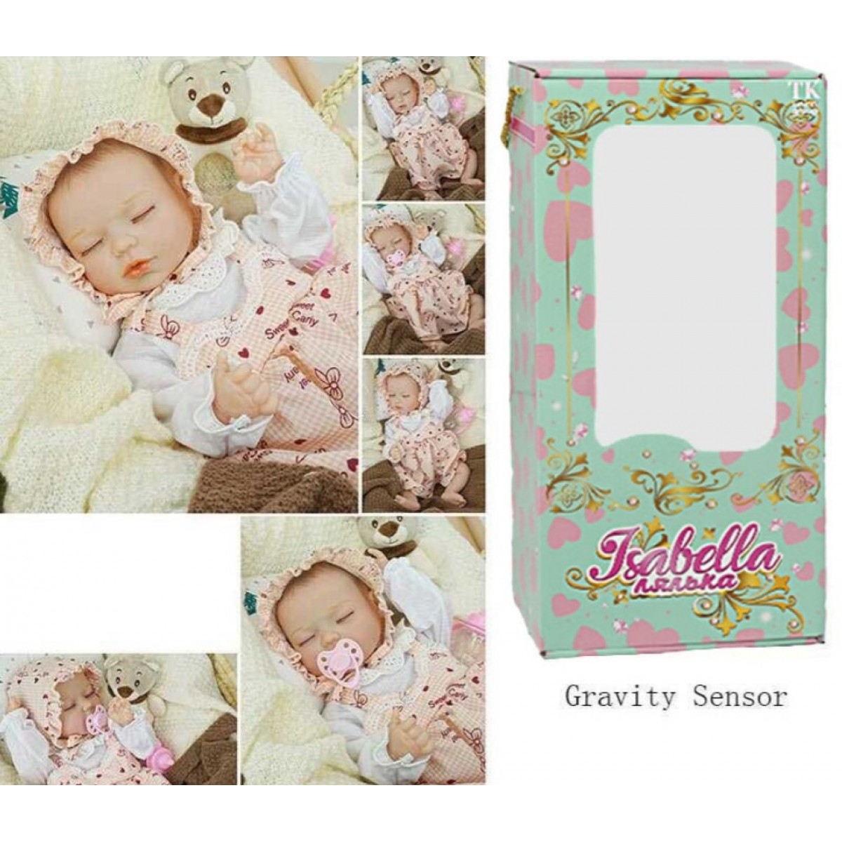 • Пупс QM 24059 "TK Group", функциональный, датчик движения, звуки: смех, плач, засыпает, высота: 42 см, резиновый, пакунок малюка
