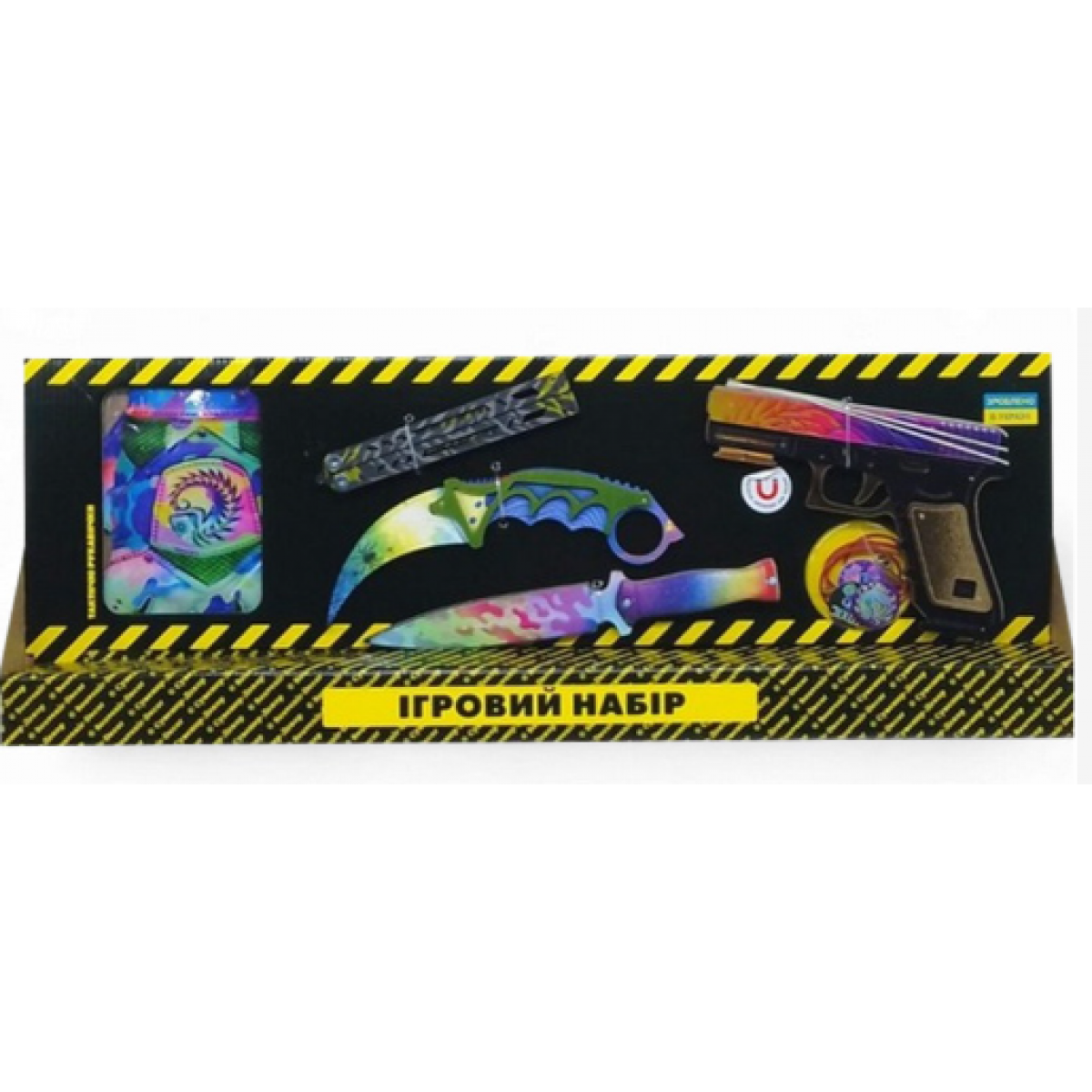 Детский игровой набор «BIG BOX» – идеальное решение для любителей активных игр и безопасных баталий! Особенно набор понравится фанатам игр CS:GO и Counter-Strike 2. В комплект входят: деревянный резинкострел с резинками, тренировочные сувенирные ножи, тактические перчатки и стильный брелок. *Окраска может отличаться от указанной на фото.