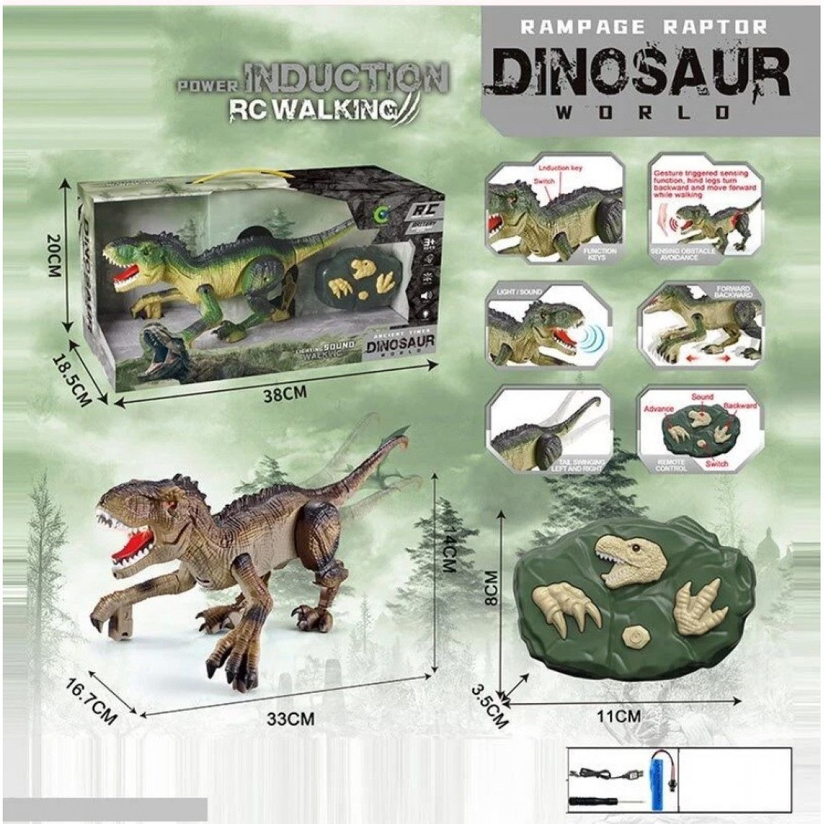 Этот реалистичный динозавр оживает прямо перед очами! Благодаря дистанционному управлению динозавр двигается вперед и назад. Подсветка и характерные рыки делают игру еще более зрелищной, а детальное исполнение придает правдоподобию каждому движению. Игрушка идеально подходит для сюжетных приключений, соревнований и активной игры.