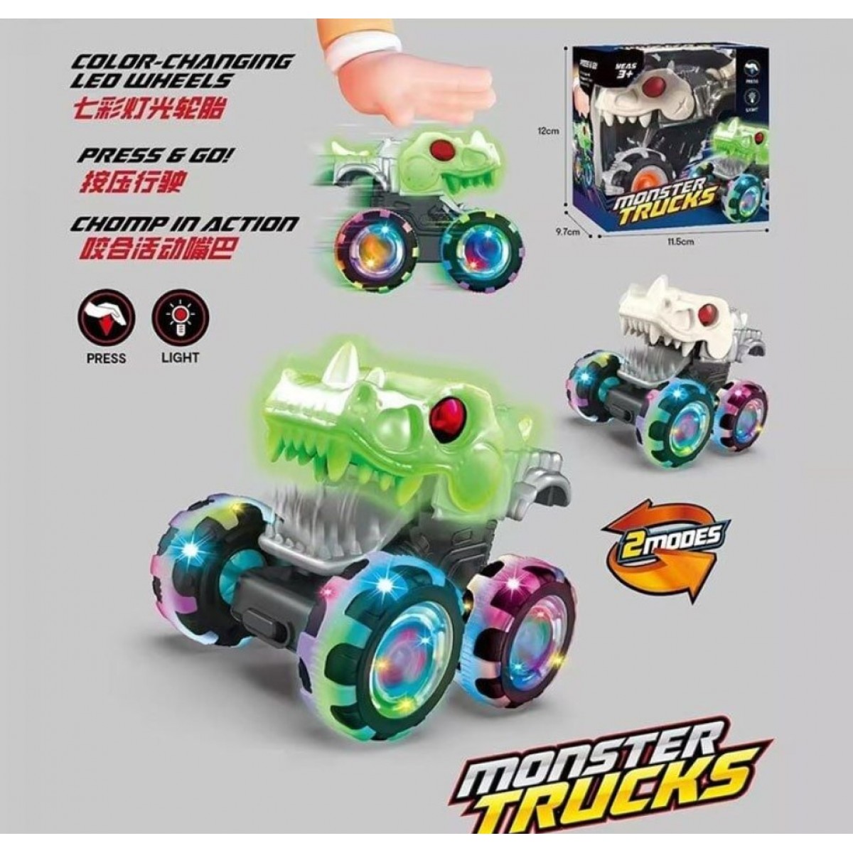 Этот грузовик-монстр в виде хищного животного подарит ребенку настоящий драйв! Нажмите на тело и отпустите —, машина устремляется вперед, открывая рот, как настоящий хищник. Крутые колеса с ярким светодиодным освещением меняют цвета и делают игру еще более зрелищной. Это идеальный подарок для маленьких любителей скорости и приключений!