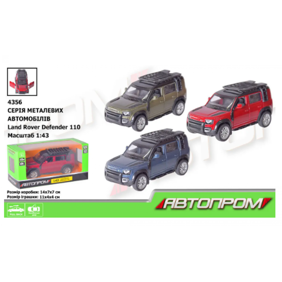 • Машина мет. АВТОПРОМ 1:43 2020 Land Rover Defender 110, открывается дверь, кор. 14*7*7см  (4356)