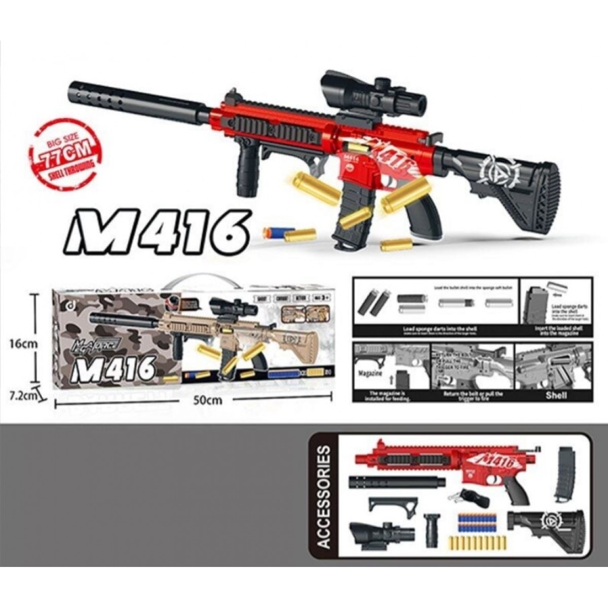 Реалистичный автомат, понравившийся каждому мальчику, ведь он практически гарантирует победу в каждой игровой баталии! Автомат имеет механический принцип работы, поэтому его нужно "свести" перед каждым выстрелом, поэтому лучше всего он подойдет для единичных точных выстрелов. Игрушка стреляет мягкими патронами на присосках, потому игра с ней будет абсолютно безопасной. Также, кроме патронов, в набор добавлены гильзы для них. Благодаря специальной конструкции игрушка имитирует реальное оружие и после каждого выстрела из него выпрыгивает гильза.