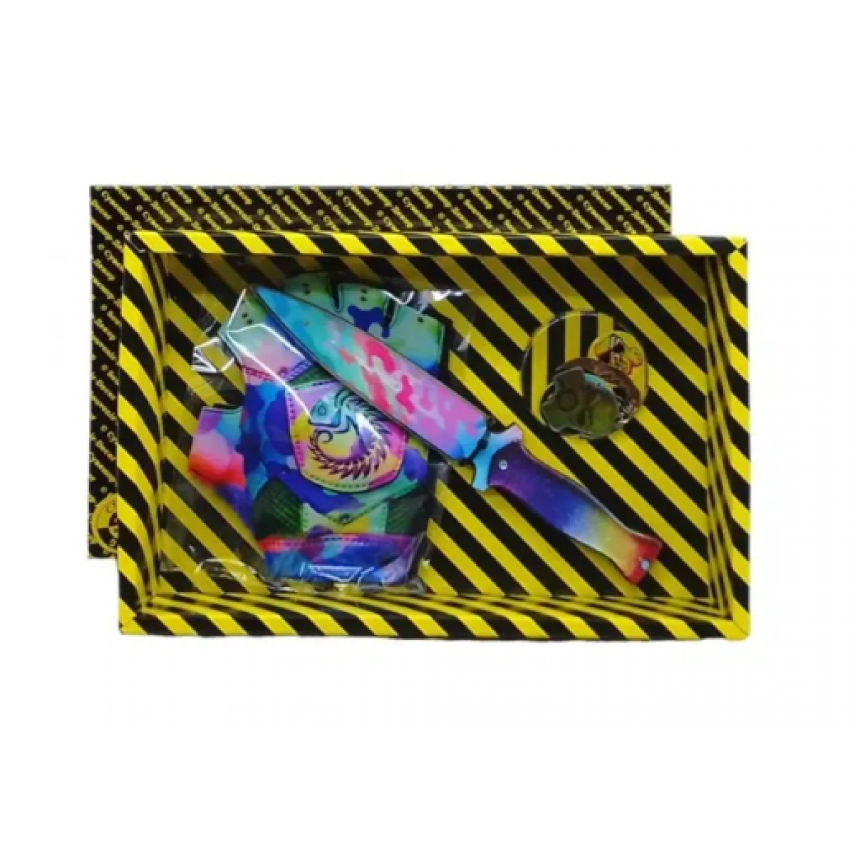 Изделие сделано из фанеры, хорошо отшлифовано и окрашено. В комплекте идет нож, маленький деревянный брелок и тканевая перчатка. Укомплектовано все в красивом картонном боксе. Все изделия набора полностью безопасны. Нож и перчатки предназначены для воспроизведения атмосферы игры и могут использоваться как элементы косплея или коллекционирования. Каждый элемент набора изготовлен из высококачественных, безопасных детей материалов, что гарантирует их прочность и долговечность.