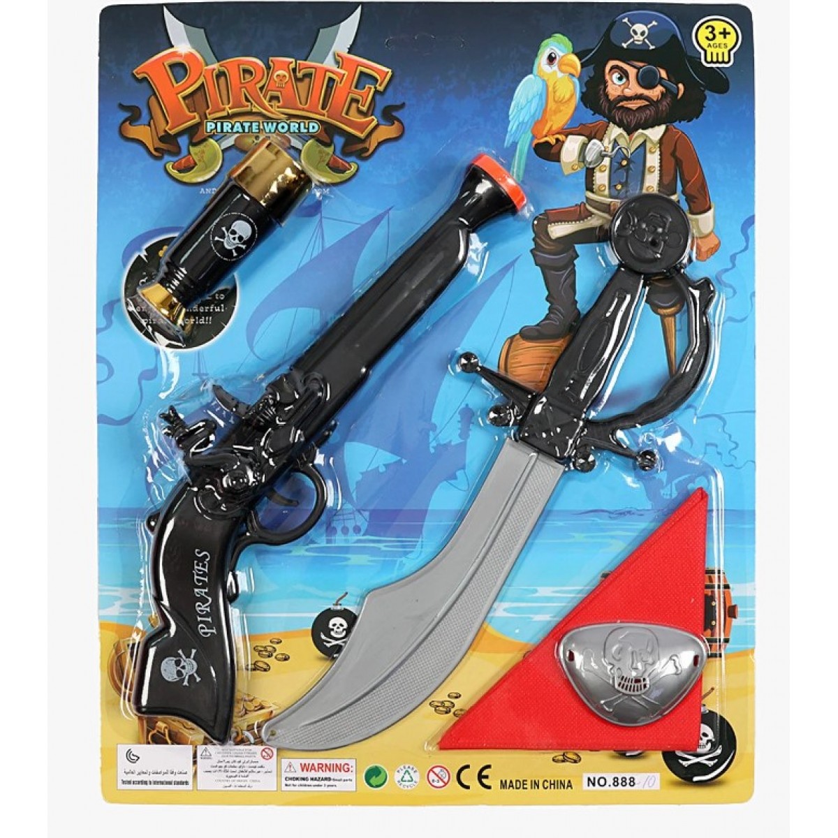Набор пирата 888-10, меч длиной 32 см, пистолет, подзорная труба, на листе, пакунок малюка