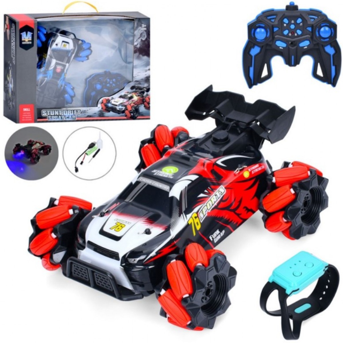 Машинка MT2022-38A р/к2, 4G 2 пульта-1 браслет на руку, аккумулятор, длина 21см, пара/дым, звук, свет, колеса-ролики, корпус не бьется, USB зарядное, в коробке.