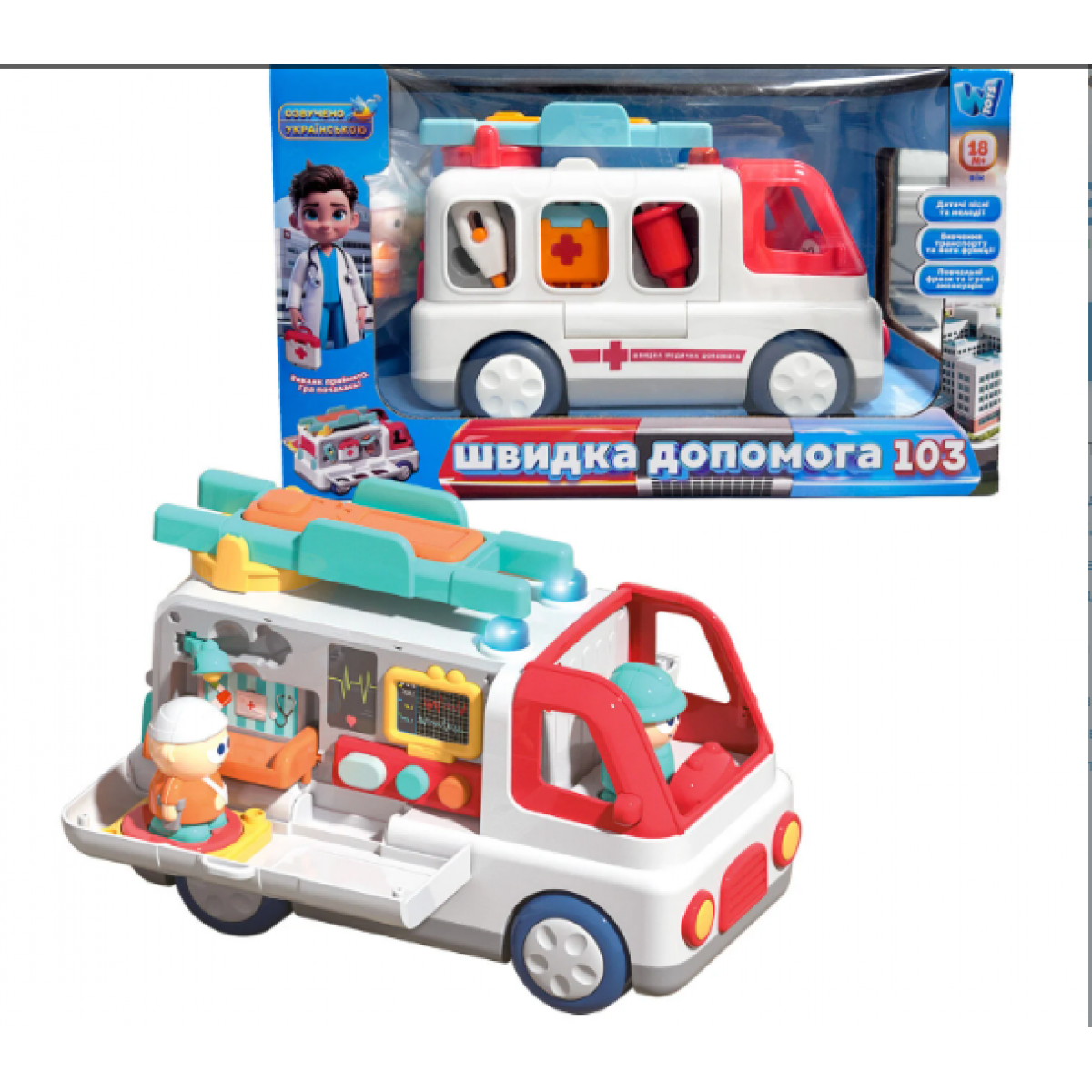 Веселый водитель, проблесковые маячки, песенки и стишки на украинском языке подарят атмосферу настоящего приключения.