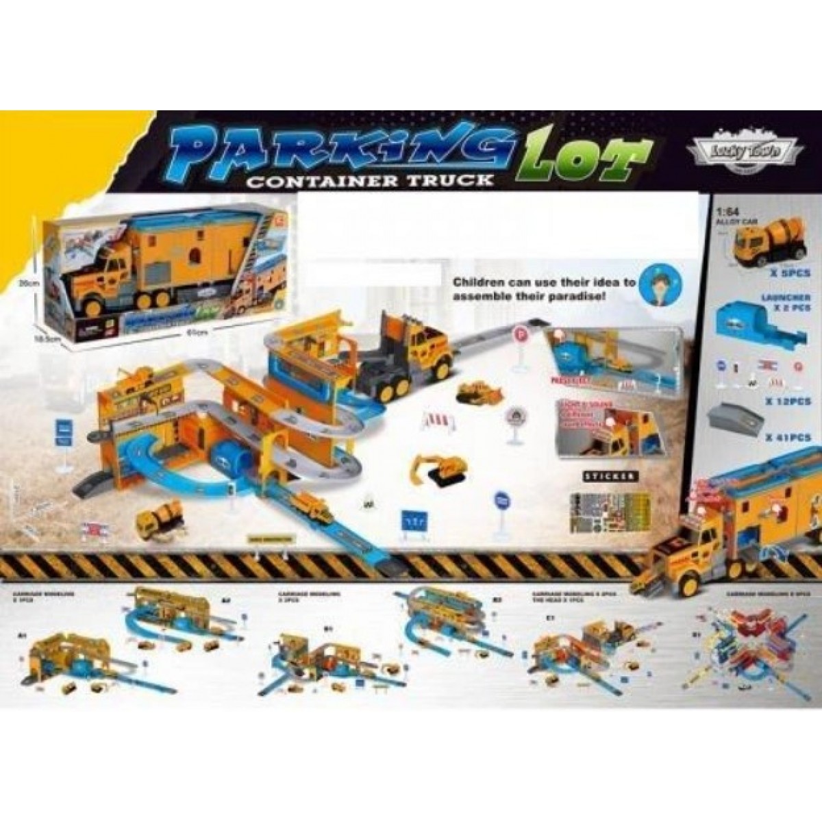 Гараж-трейлер игровой в наборе XG879-120 крутой набор для мальчика, увлекающийся автомобилями и гонками. С помощью игрового трека ребенок сможет придумать множество игр. Ребёнок сможет развивать свою фантазию и творческий потенциал.
