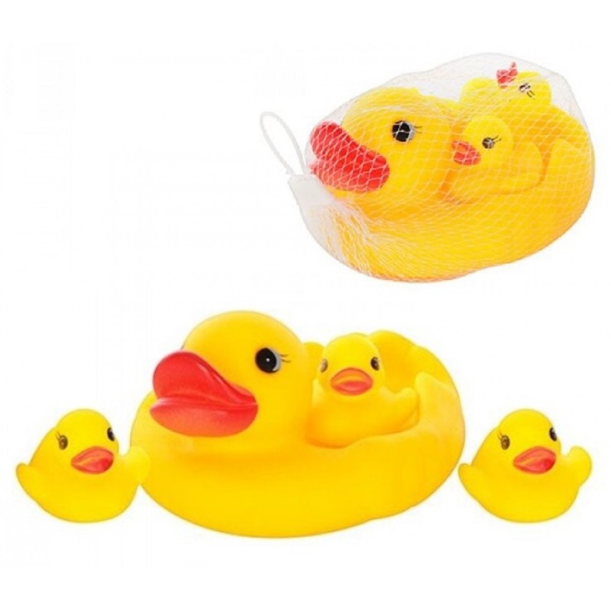 Заботливая мама-уточка и ее утята обожают купаться в озере или речке, но с удовольствием окунутся в обычную ванну. Они легко скользят по воде, а при нажатии – издают негромкий писк.  Сжимая изделие в руках, малыш будет разрабатывать пальцы и улучшать кровообращение. Невероятно важным качеством является водонепроницаемость и нерастворимость, ведь ребенок будет регулярно брать игрушки с собой в ванну, мочить их в воде.