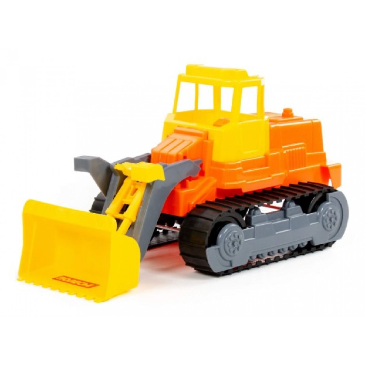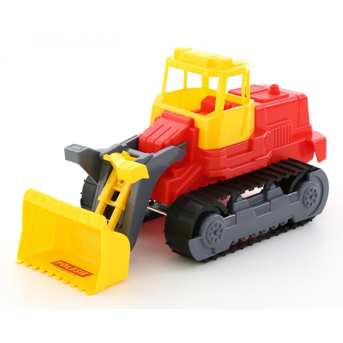 Гусеницы хоть и изготовлены из пластика, но имеют подвижные элементы. Ковш полностью подвижный, он может поднимать песок или игрушки. Трактор Polesie 7377 выполнен очень красочно, он сделан в красном и желтом цвете.