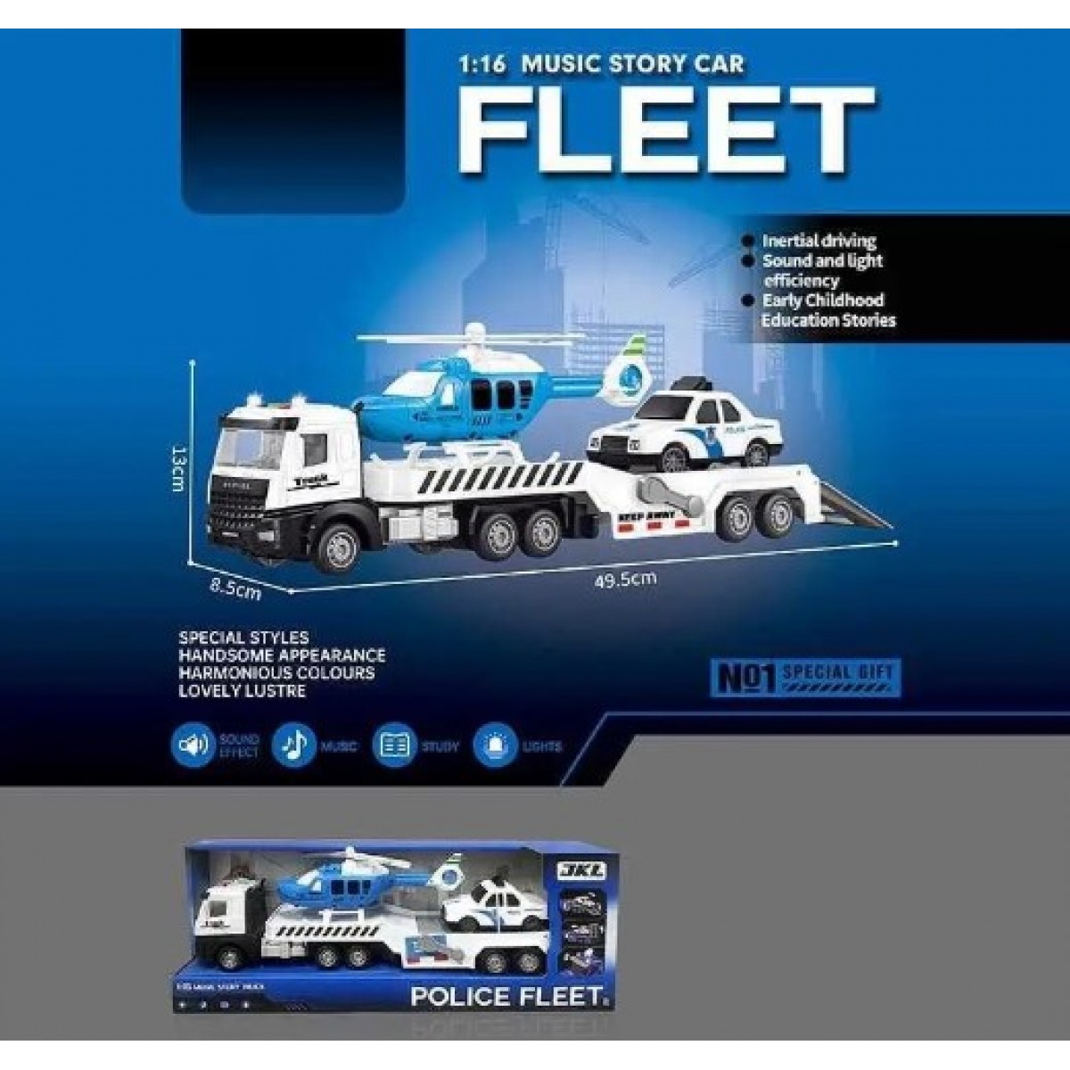 • Трейлер D 2462, звуки, подсветка, инерция, масштаб 1:16, машинка, вертолет, пакунок малюка