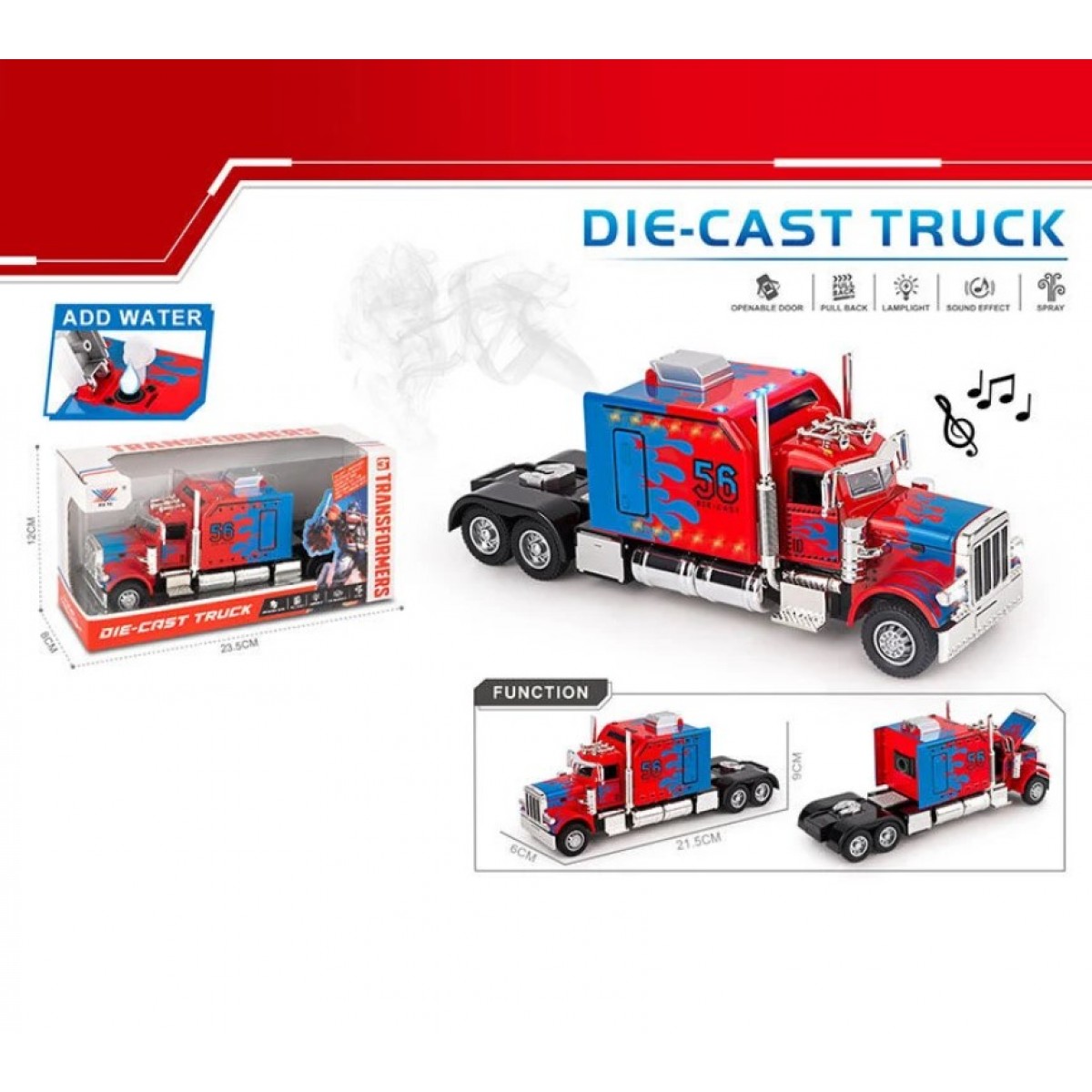 Подсветка и звуки транспорта воспроизводят атмосферу настоящей дороги. Благодаря инерционному механизму трейлер легко разгоняется одним толчком. Дверь открывается, что позволяет дополнять игру новыми сюжетами.